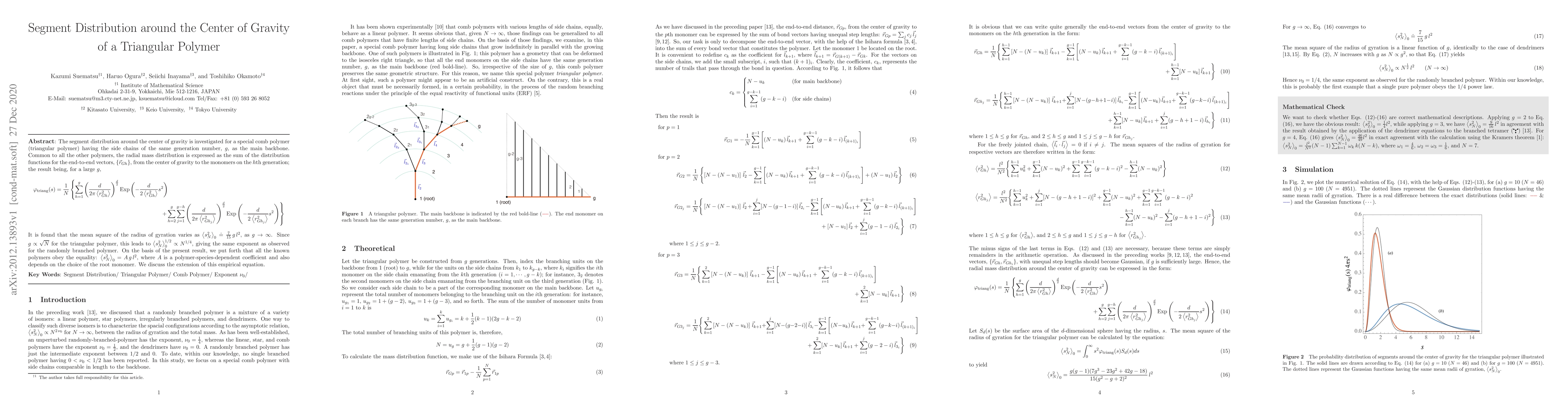 Researchers studied a triangular polymer's segment distribution around its center of gravity, finding that it follows an empirical equation related to the generation number and chain length, with implications for understanding polymers' behavior.