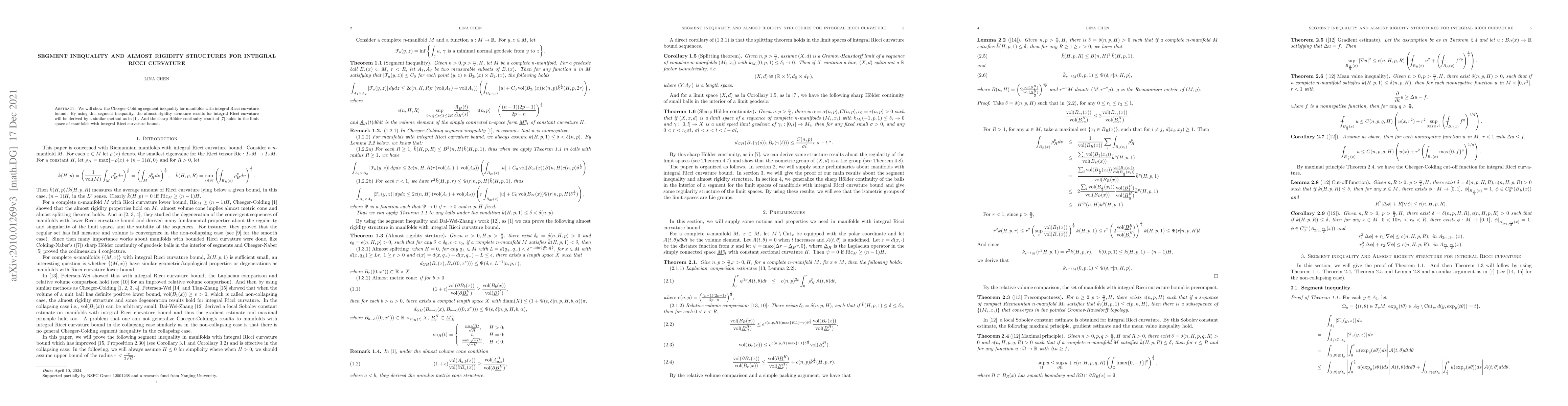 Summary: This paper demonstrates the Cheeger-Colding segment inequality for manifolds with integral Ricci curvature bounds and derives almost rigidity structure results using a method similar to \cite{CC1}, while also confirming the sharp H\"older continuity results from \cite{CoN} in the limit space.