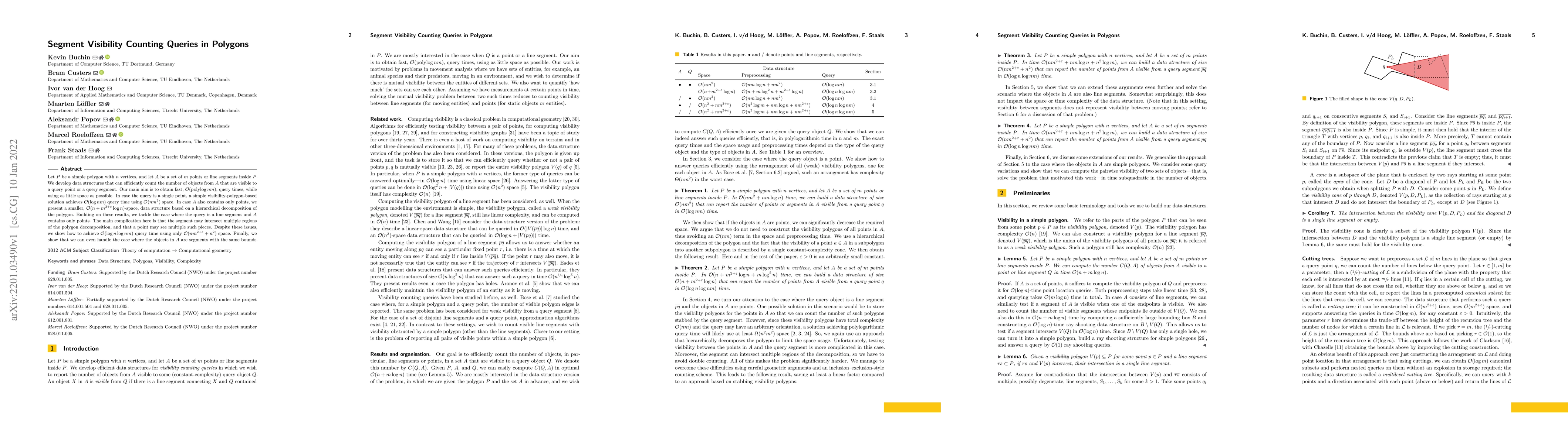 Let $P$ be a simple polygon with $n$ vertices, and let $A$ be a set of $m$ points or line segments inside $P$. We develop data structures that can efficiently count the number of objects from $A$ that are visible to a query point or a query segment. Our main aim is to obtain fast, $O(\mathop{\textrm{polylog}} nm$), query times, while using as little space as possible. In case the query is a single point, a simple visibility-polygon-based solution achieves $O(\log nm)$ query time using $O(nm^2)$ space. In case $A$ also contains only points, we present a smaller, $O(n + m^{2 + \varepsilon}\log n)$-space, data structure based on a hierarchical decomposition of the polygon. Building on these results, we tackle the case where the query is a line segment and $A$ contains only points. The main complication here is that the segment may intersect multiple regions of the polygon decomposition, and that a point may see multiple such pieces. Despite these issues, we show how to achieve $O(\log n\log nm)$ query time using only $O(nm^{2 + \varepsilon} + n^2)$ space. Finally, we show that we can even handle the case where the objects in $A$ are segments with the same bounds.