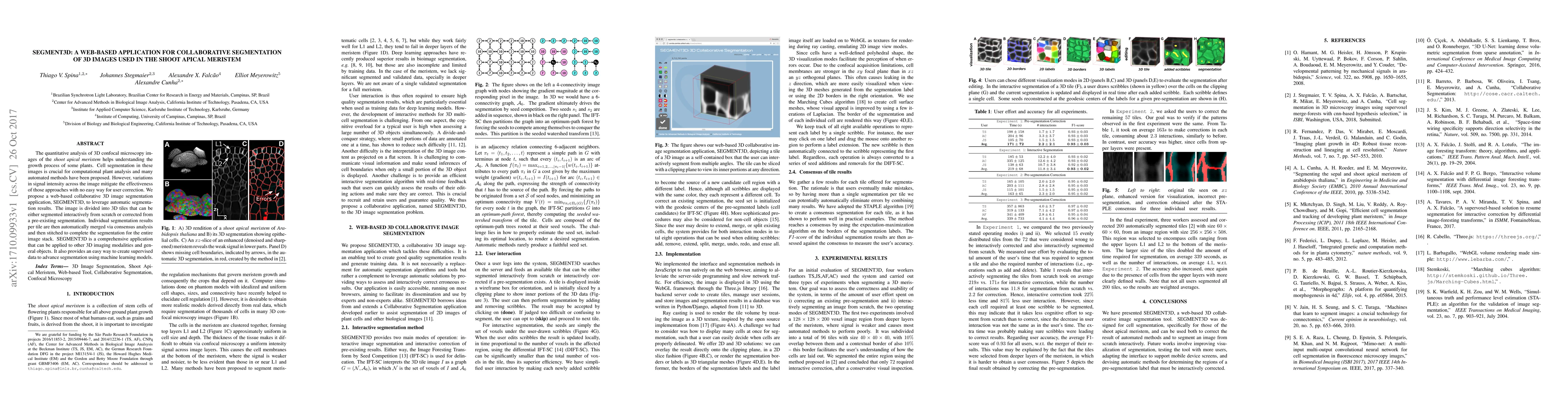 SEGMENT3D is a web-based tool for collaborative segmentation of 3D confocal microscopy images of the shoot apical meristem, facilitating both manual correction and automatic merging of segmentations to enhance plant growth analysis. It also supports data creation for advancing machine learning-based segmentation methods.