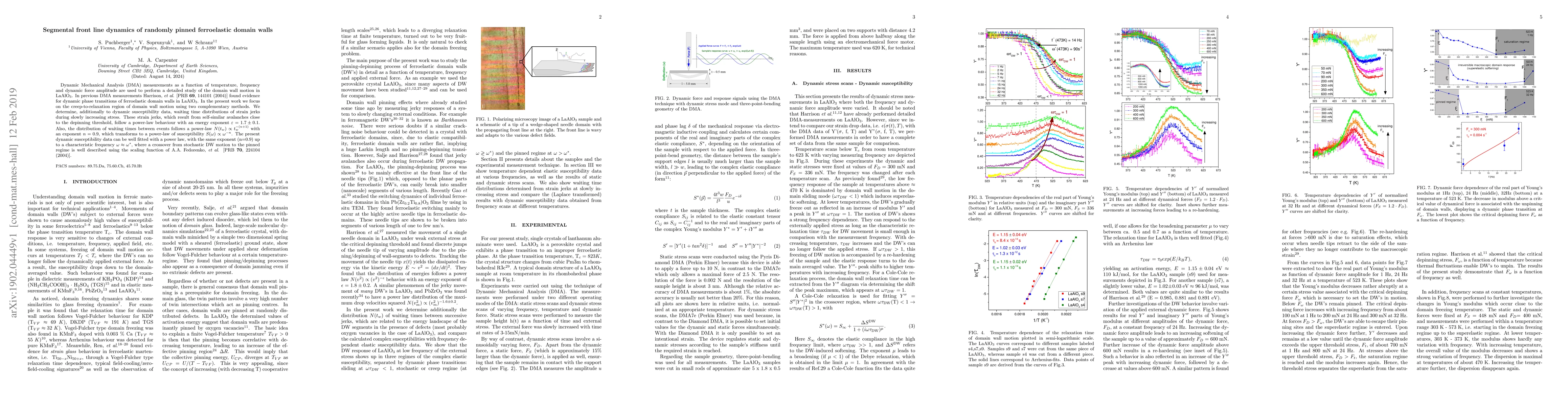The paper presents a detailed analysis of domain wall motion in LaAlO3 using dynamic mechanical analysis, providing a comprehensive understanding of the segmental front line dynamics of randomly pinned ferroelastic domain walls.