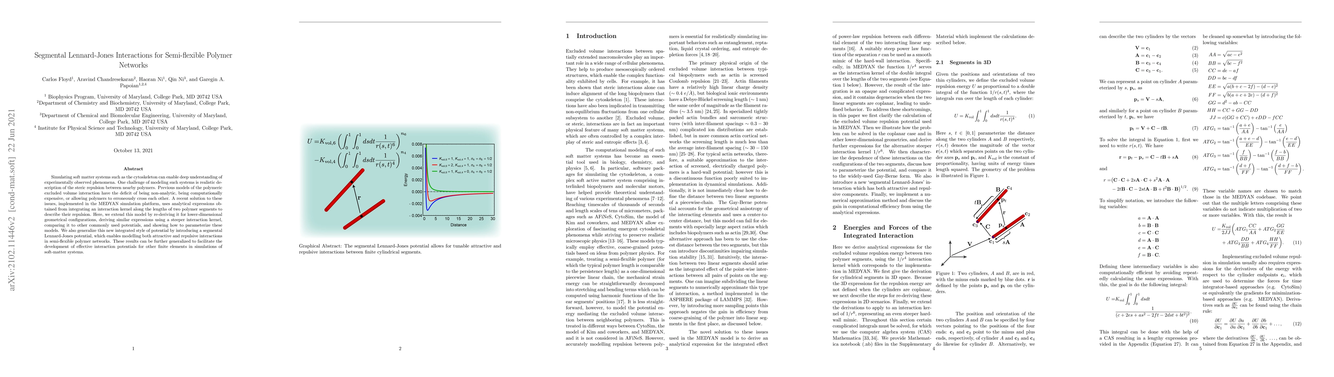 This paper proposes a segmental Lennard-Jones interaction model for semi-flexible polymer networks, addressing the limitations of previous models by providing analytical expressions for steric repulsion that are computationally efficient and avoid polymer crossing. The new model also introduces a segmental Lennard-Jones potential to model both attractive and repulsive interactions.