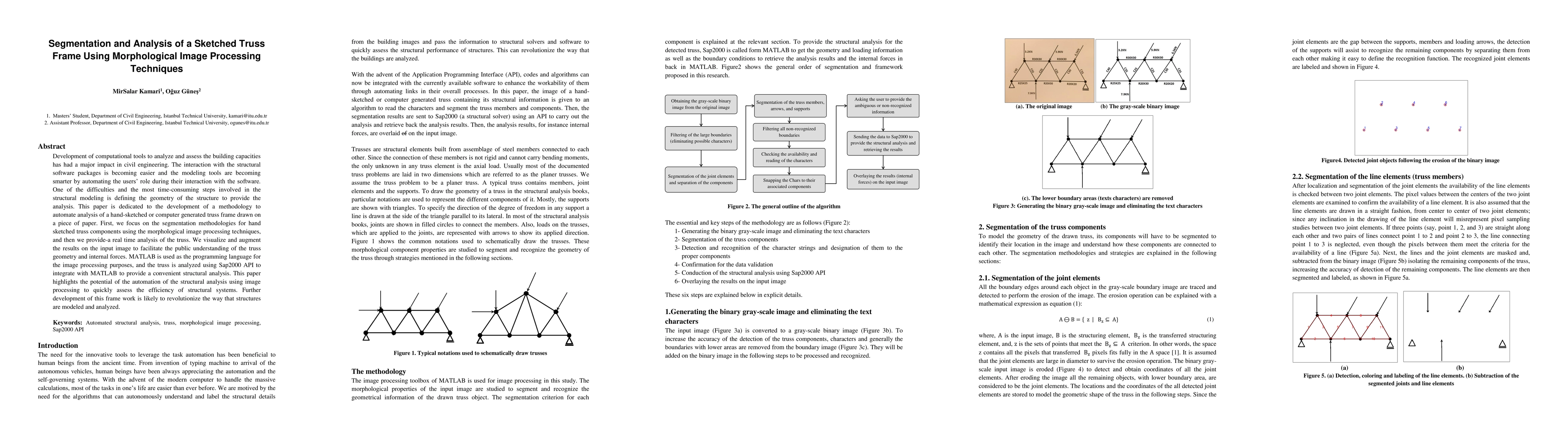 This paper develops a methodology to automate the analysis of hand-sketched truss frames using morphological image processing techniques for segmentation and real-time structural analysis with Sap2000 API integrated via MATLAB, aiming to revolutionize structural modeling and assessment.