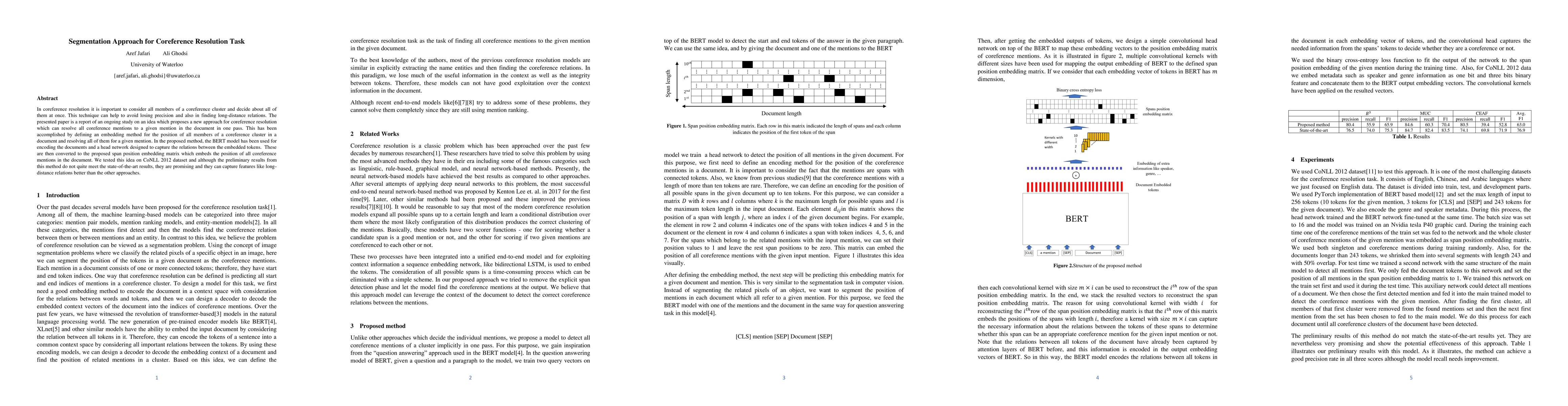 A new approach for coreference resolution proposes using a BERT model to encode documents and a head network to capture relations between embedded tokens, resulting in better performance on capturing long-distance relations.