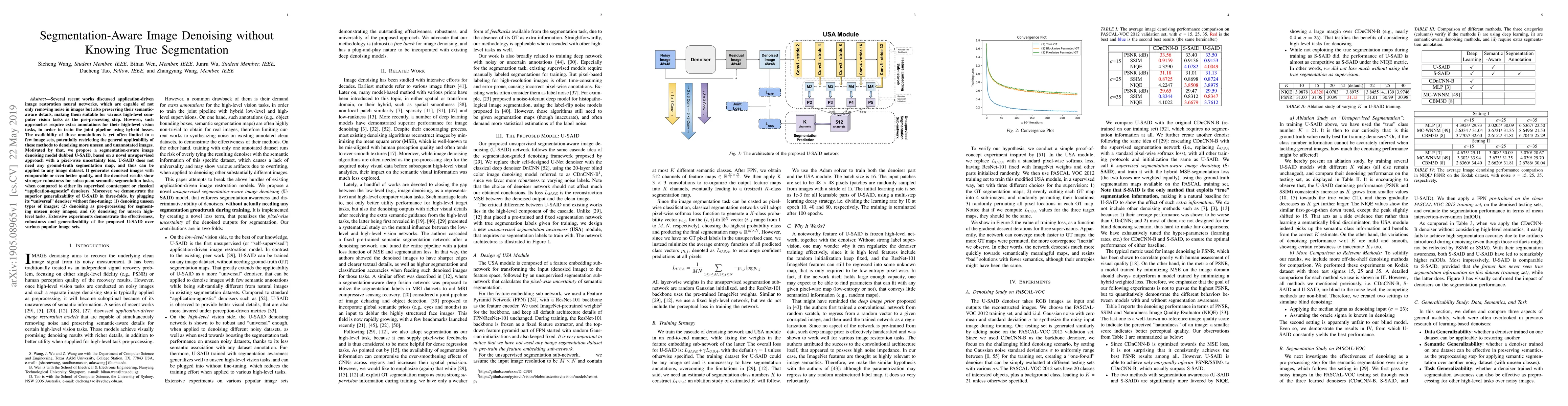 U-SAID, a novel unsupervised approach, achieves state-of-the-art image denoising with segmentation-aware details without requiring ground-truth annotations, generalizing well to unseen images and tasks.