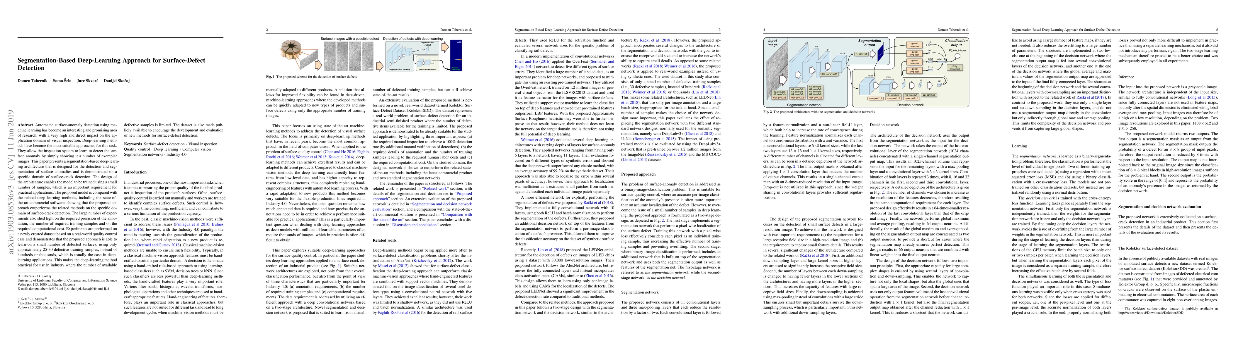 This paper introduces a segmentation-based deep-learning model for surface-crack detection, demonstrating its effectiveness with a small number of training samples. The proposed method outperforms existing deep-learning techniques and is practical for industrial applications due to its efficiency and the publicly available dataset.