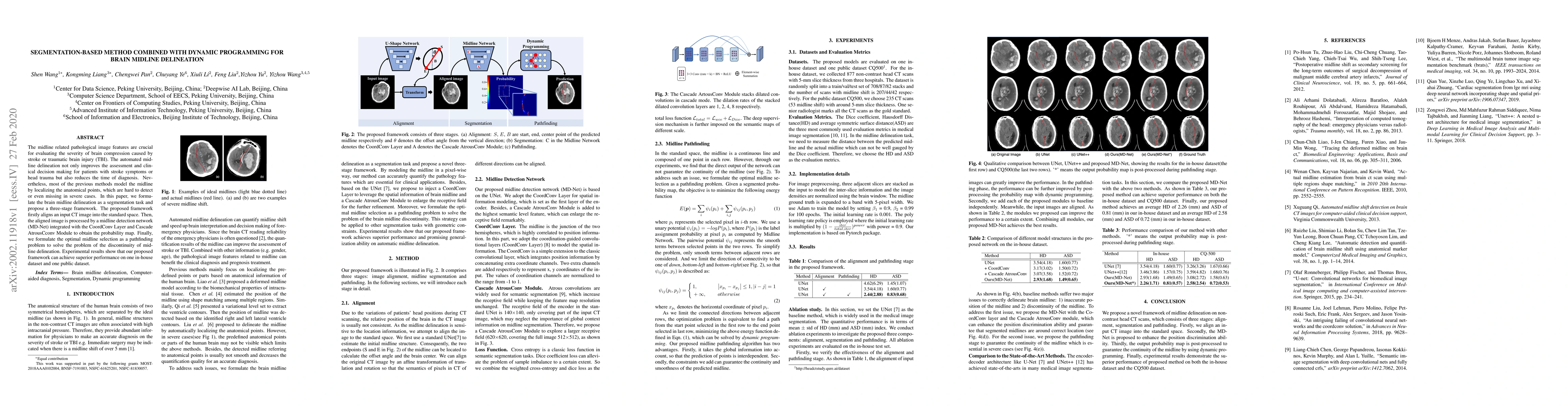 This paper proposes a three-stage framework for automated brain midline delineation, combining segmentation and dynamic programming to improve detection accuracy and speed.