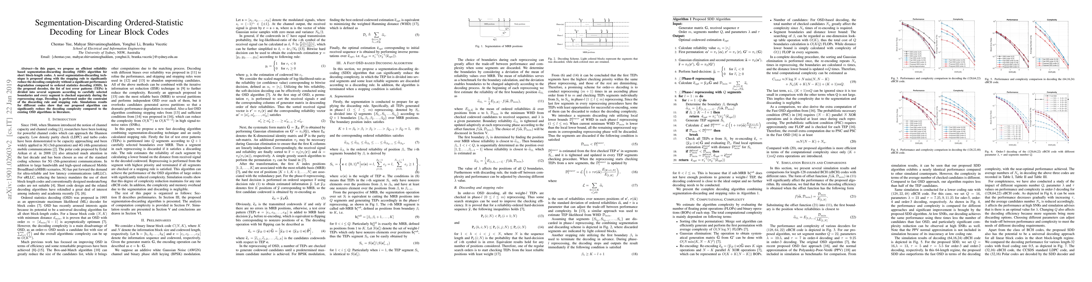 This paper proposes an efficient segmentation-discarding decoding algorithm for short block-length linear codes, significantly reducing decoding complexity while maintaining performance comparable to ordered statistics decoding. The algorithm segments test error patterns and applies a discarding rule, achieving lower complexity with minimal performance loss.