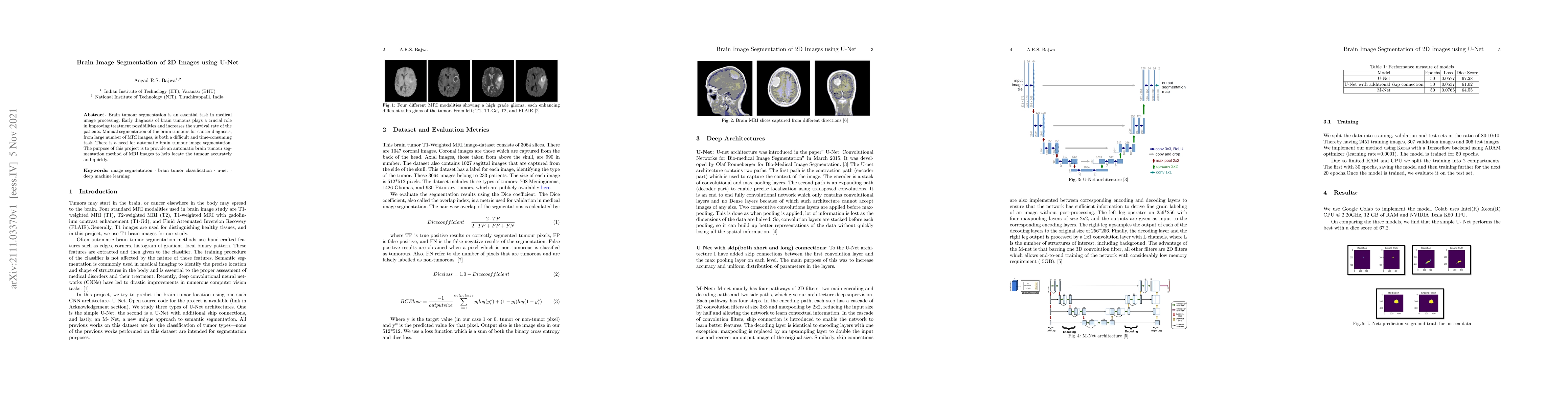 This paper proposes an automatic method for segmenting brain tumours in 2D MRI images to facilitate early diagnosis and treatment. The aim is to replace manual segmentation, which is laborious, to improve accuracy and efficiency in tumour localization.