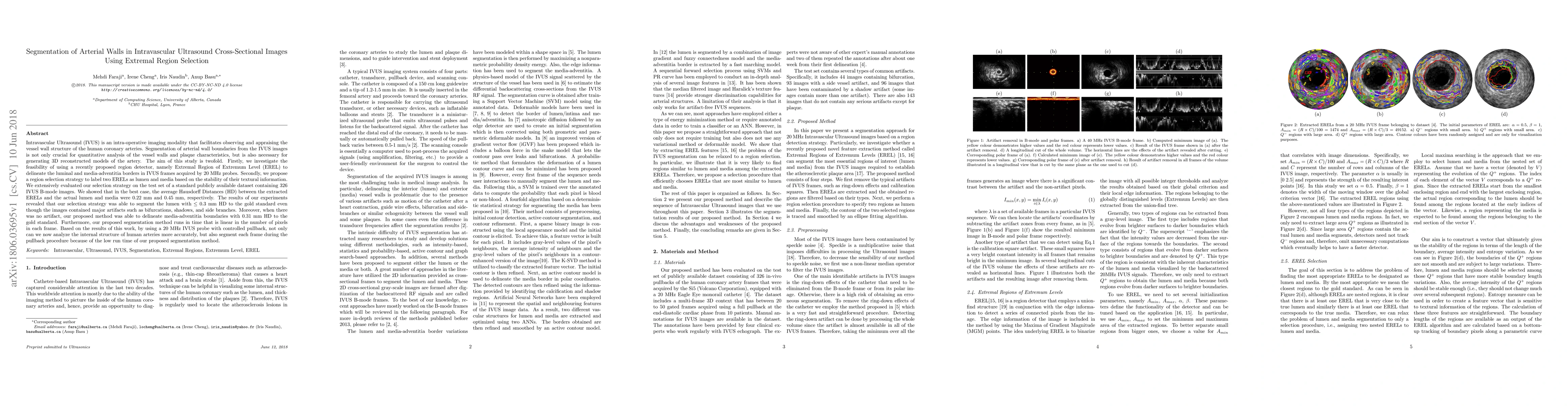 This study explores the use of Extremal Region of Extremum Level (EREL) for segmenting arterial wall boundaries in Intravascular Ultrasound (IVUS) images, proposing a region selection strategy based on textural information stability. The method achieved an average Hausdorff Distance of $0.22$ mm for lumen and $0.45$ mm for media-adventitia segmentation, demonstrating effective performance even in the presence of artifacts.