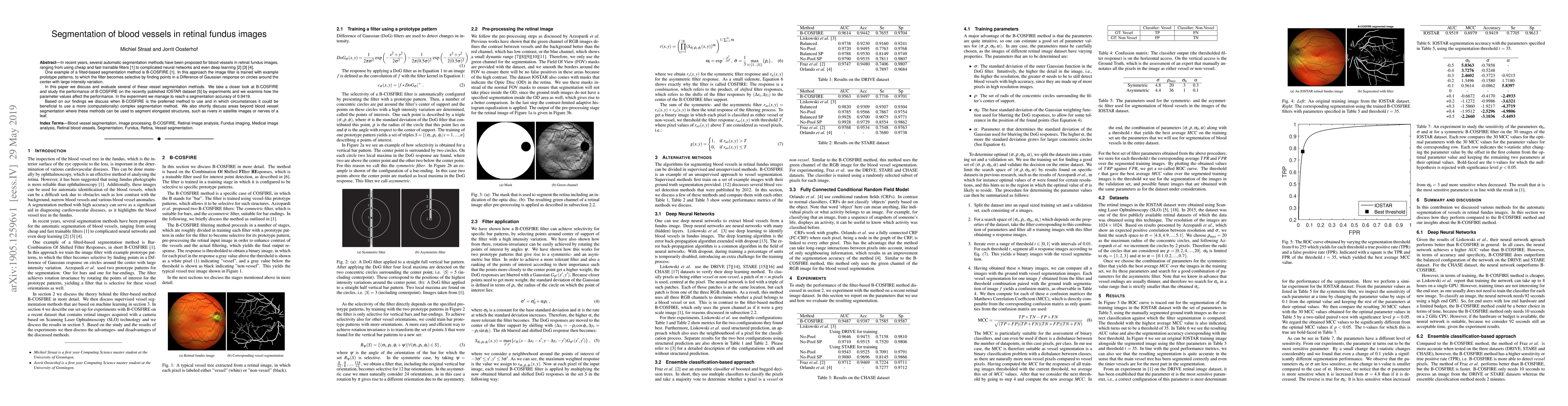 This paper evaluates various automatic blood vessel segmentation methods for retinal fundus images, focusing on B-COSFIRE and its performance on the IOSTAR dataset. The study finds B-COSFIRE achieves a segmentation accuracy of 0.9419, discussing its advantages and when it is preferable over more complex methods.