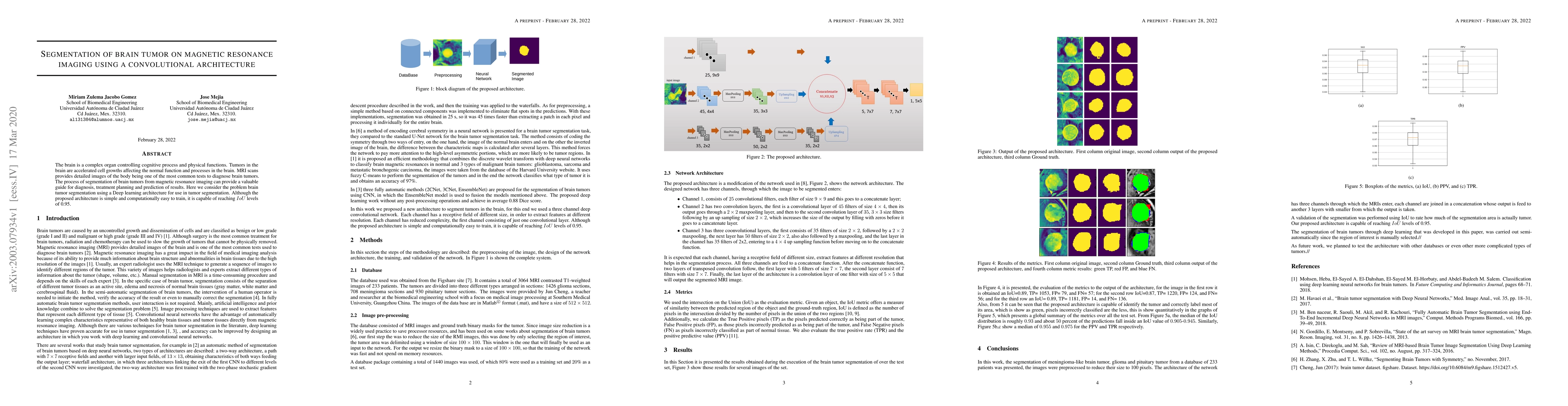 This paper proposes a deep learning convolutional architecture for segmenting brain tumors from MRI scans, achieving high Intersection over Union (IoU) levels of 0.95, providing valuable diagnostic and treatment planning support. The simplicity and efficiency of the architecture make it a practical tool for medical professionals.