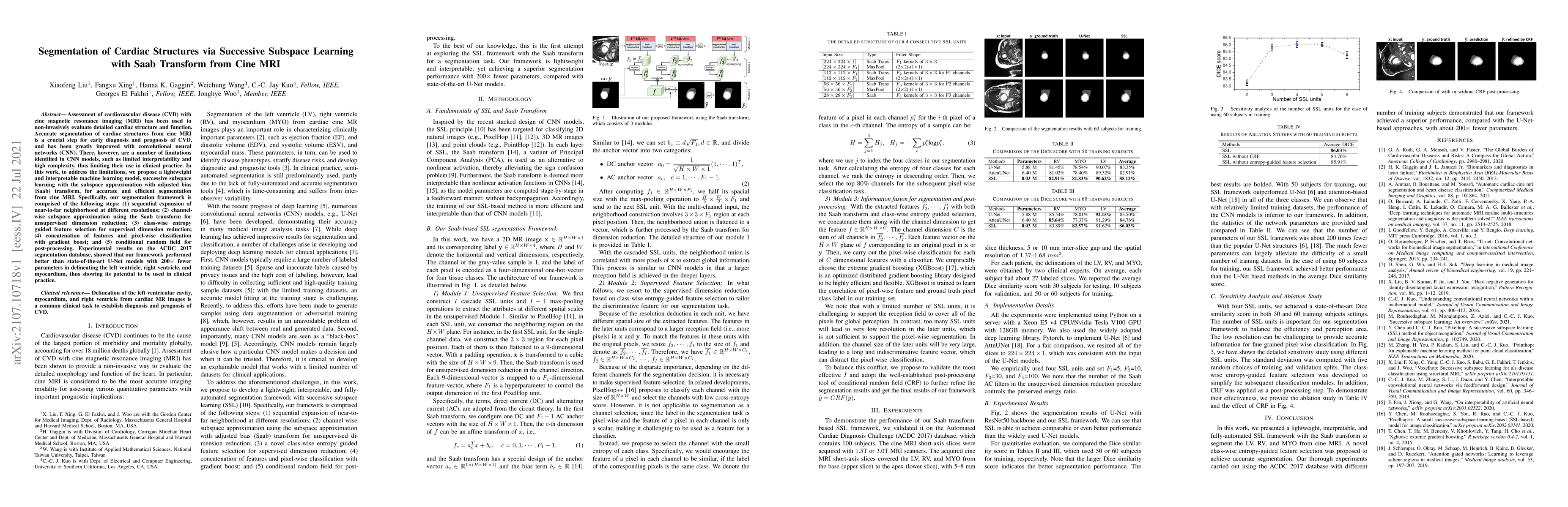 This paper proposes a lightweight and interpretable machine learning model using successive subspace learning with the Saab transform for accurate segmentation of cardiac structures from cine MRI, outperforming state-of-the-art U-Net models with significantly fewer parameters, thus enhancing its clinical applicability.