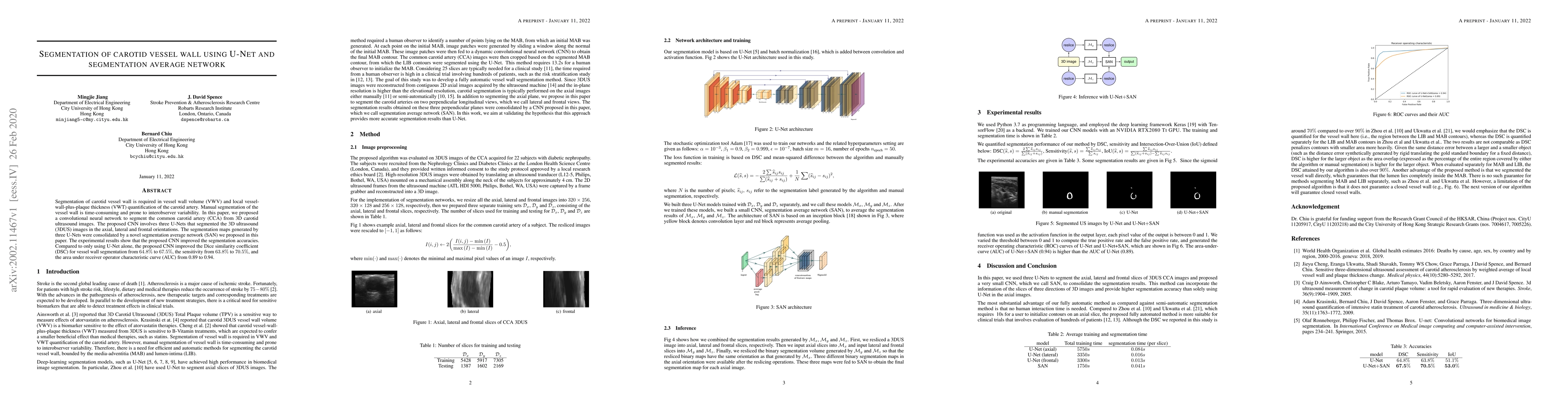 This research introduces a convolutional neural network (CNN) utilizing three U-Nets to segment the common carotid artery from 3D carotid ultrasound images, enhancing vessel wall volume and thickness quantification. The segmentation maps are further refined using a novel segmentation average network, resulting in improved Dice similarity coefficient, sensitivity, and AUC.
