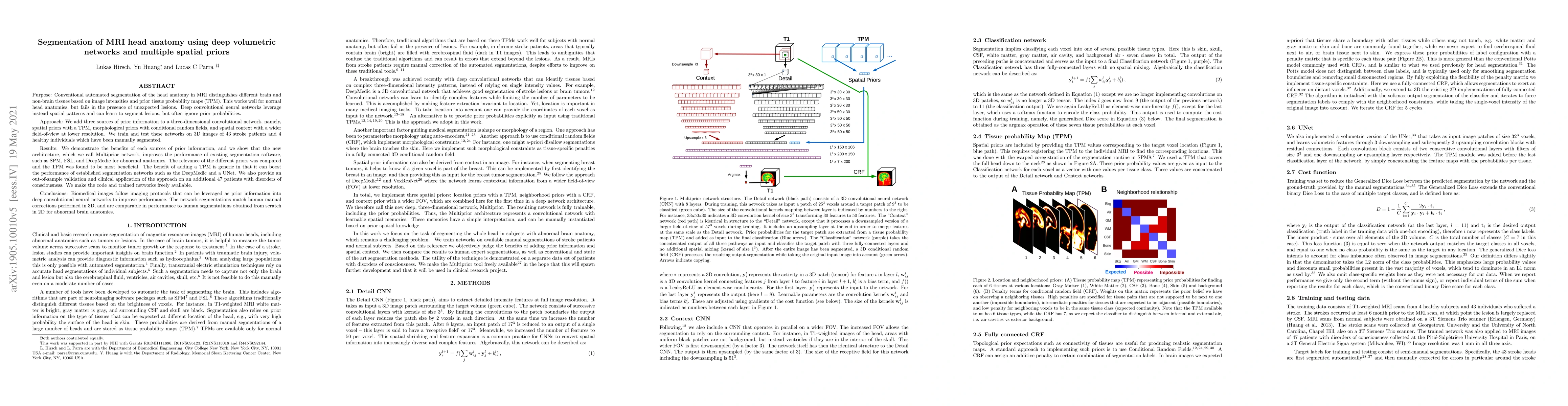 This paper proposes a Multiprior network that integrates spatial, morphological, and contextual priors into a deep convolutional network to improve MRI head anatomy segmentation, especially in the presence of lesions. The network outperforms existing segmentation tools and shows promising results in clinical applications for patients with disorders of consciousness.