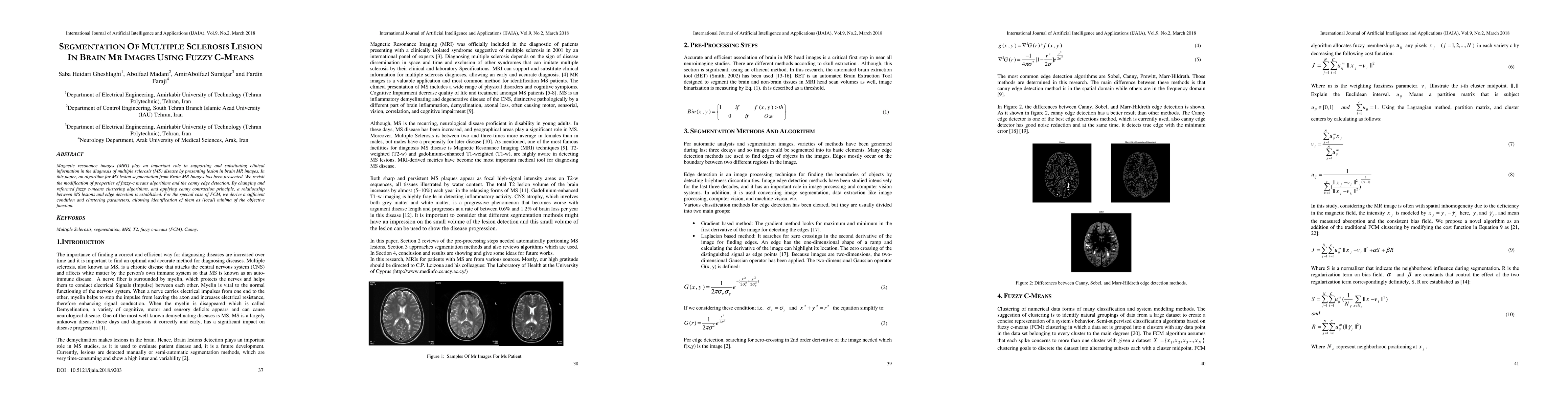 This paper presents an algorithm for segmenting multiple sclerosis lesions in brain MRIs using a modified fuzzy c-means clustering combined with Canny edge detection. The modified fuzzy c-means algorithm, along with the Canny contraction principle, establishes a relationship between MS lesions and edge detection, facilitating accurate lesion identification.