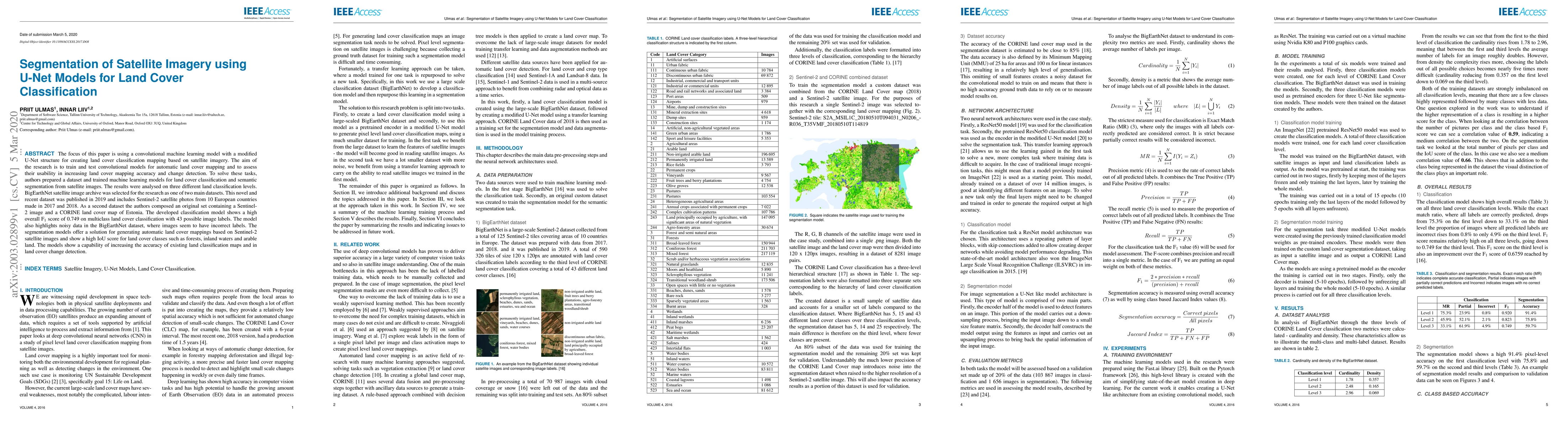 This paper explores the use of a modified U-Net convolutional model for land cover classification from satellite imagery, achieving a high F1 score of 0.749. The study demonstrates the model's effectiveness in improving land cover mapping accuracy and detecting changes using datasets like BigEarthNet and a custom Estonian dataset.