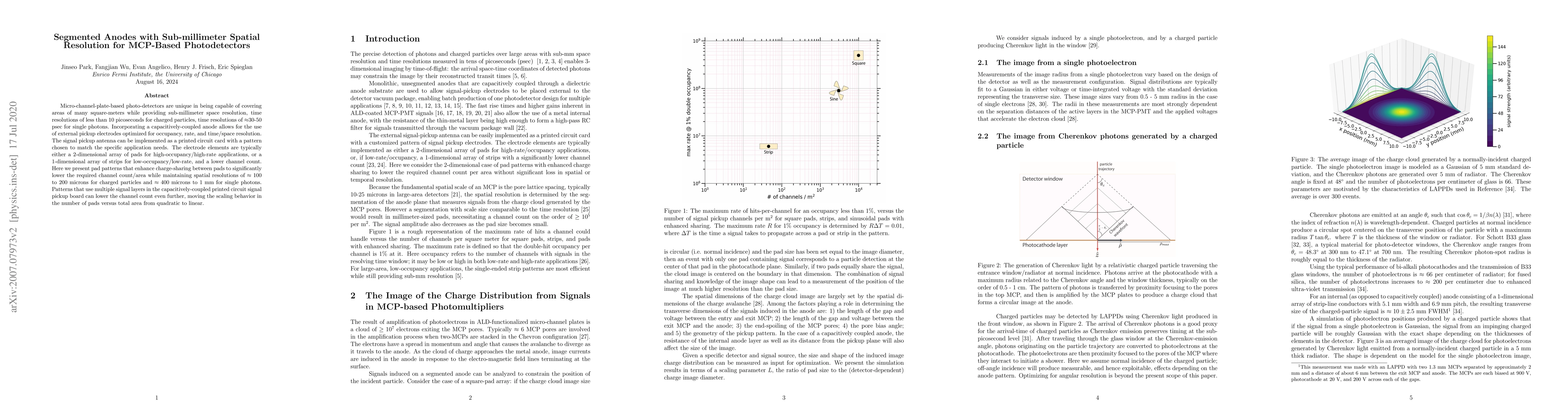 Micro-channel-plate-based photo-detectors are unique in being capable of covering areas of many square-meters while providing sub-millimeter space resolution, time resolutions of less than 10 picoseconds for charged particles, time resolutions of 30-50 psec for single photons. Incorporating a capacitively-coupled anode allows for the use of external pickup electrodes optimized for occupancy, rate, and time/space resolution. The signal pickup antenna can be implemented as a printed circuit card with a pattern chosen to match the specific application needs. The electrode elements are typically either a 2-dimensional array of pads for high-occupancy/high-rate applications, or a 1-dimensional array of strips for low-occupancy/low-rate, and a lower channel count. Here we present pad patterns that enhance charge-sharing between pads to significantly lower the required channel count/area while maintaining spatial resolutions of 100 to 200 microns for charged particles and 400 microns to 1 mm for single photons. Patterns that use multiple signal layers in the capacitively-coupled printed circuit signal pickup board can lower the channel count even further, moving the scaling behavior in the number of pads versus total area from quadratic to linear.