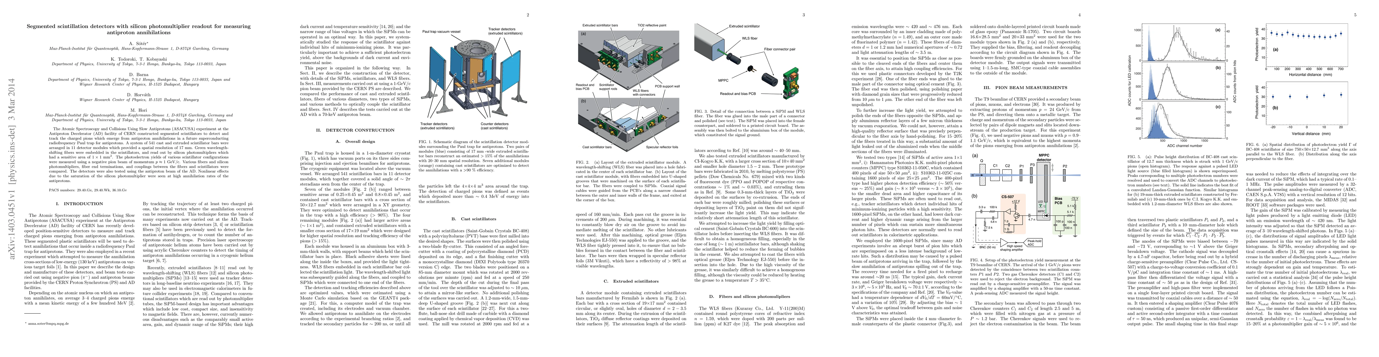 The ASACUSA experiment at CERN developed segmented scintillation detectors with silicon photomultipliers to track charged pions from antiproton annihilations. The detectors, consisting of 541 scintillator bars and green wavelength-shifting fibers, showed nonlinear effects at high annihilation rates due to silicon photomultiplier saturation.