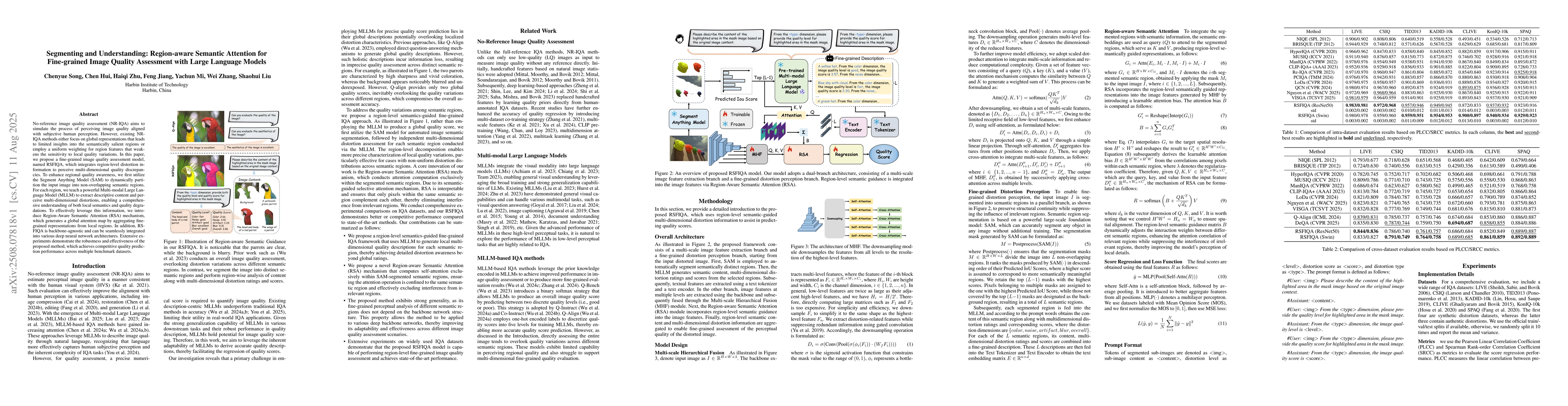 This paper introduces RSFIQA, a fine-grained image quality assessment model that uses semantic region segmentation and a Multi-modal Large Language Model to understand local quality variations. It employs a Region-Aware Semantic Attention mechanism for global attention map generation, showing robust performance across various datasets.