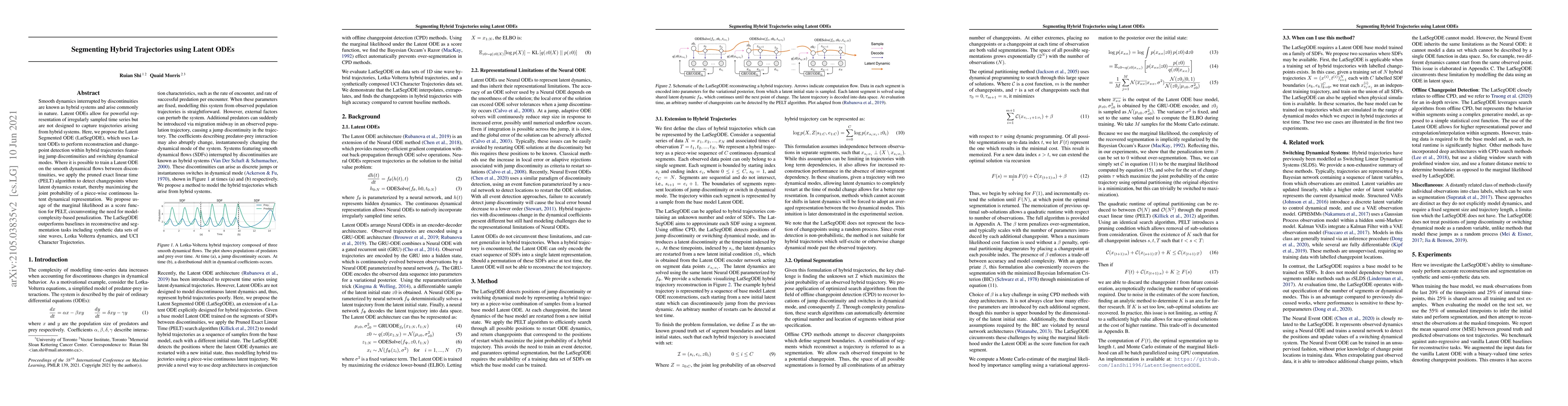 This paper introduces Latent Segmented ODE (LatSegODE) to model hybrid trajectories with discontinuities. It combines Latent ODEs with the PELT algorithm for changepoint detection, achieving superior performance in reconstructing and segmenting hybrid systems compared to baselines.
