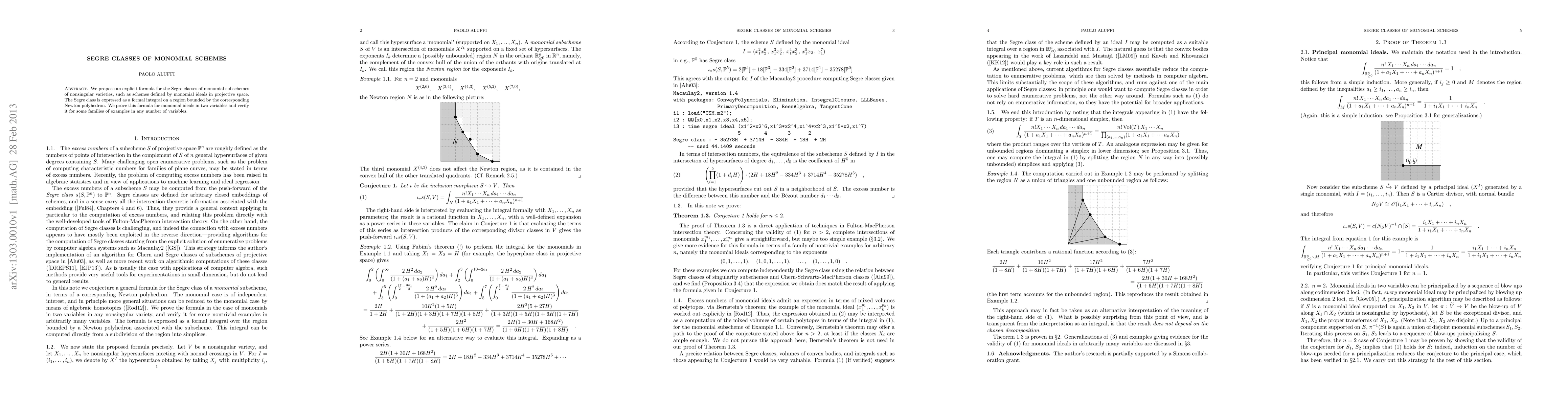 We propose an explicit formula for the Segre classes of monomial subschemes of nonsingular varieties, such as schemes defined by monomial ideals in projective space. The Segre class is expressed as a formal integral on a region bounded by the corresponding Newton polyhedron. We prove this formula for monomial ideals in two variables and verify it for some families of examples in any number of variables.