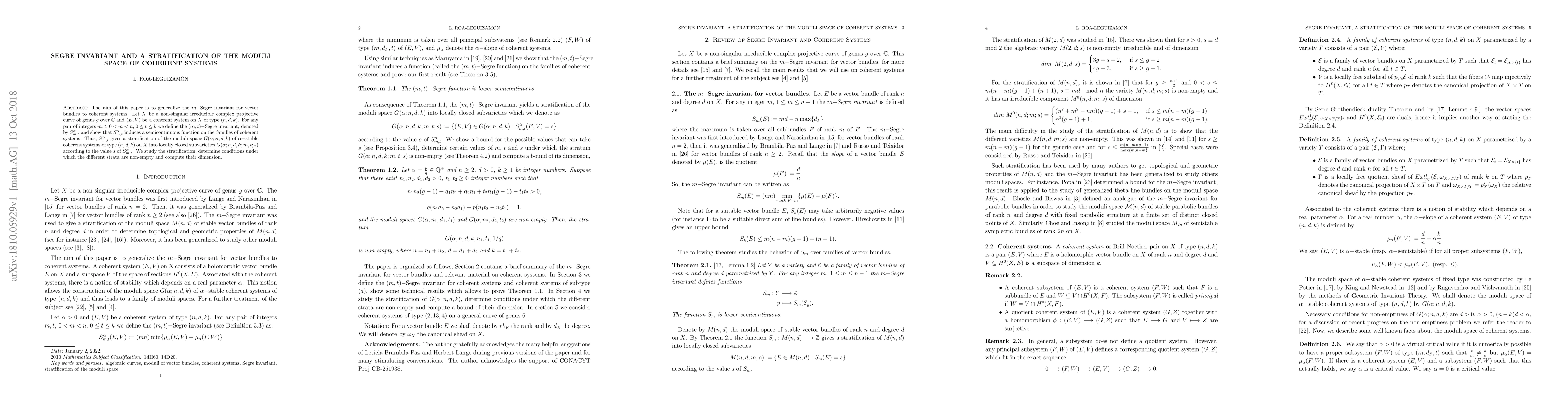 This paper generalizes the Segre invariant to coherent systems on complex projective curves, providing a stratification of the moduli space of stable coherent systems based on the value of the Segre invariant.