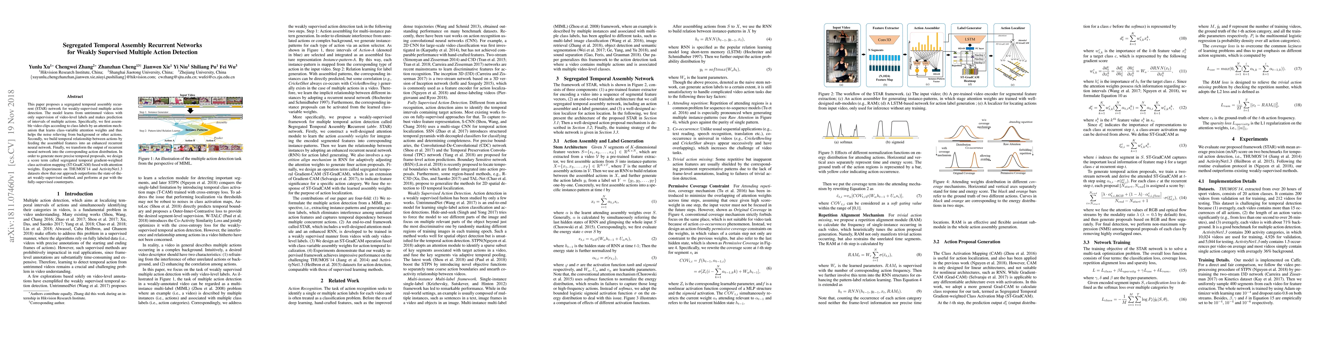 This paper introduces a STAR network for weakly-supervised detection of multiple actions in untrimmed videos, utilizing an attention mechanism and enhanced recurrent neural network to predict action intervals. The approach also employs ST-GradCAM for precise temporal proposals, outperforming state-of-the-art weakly-supervised methods.