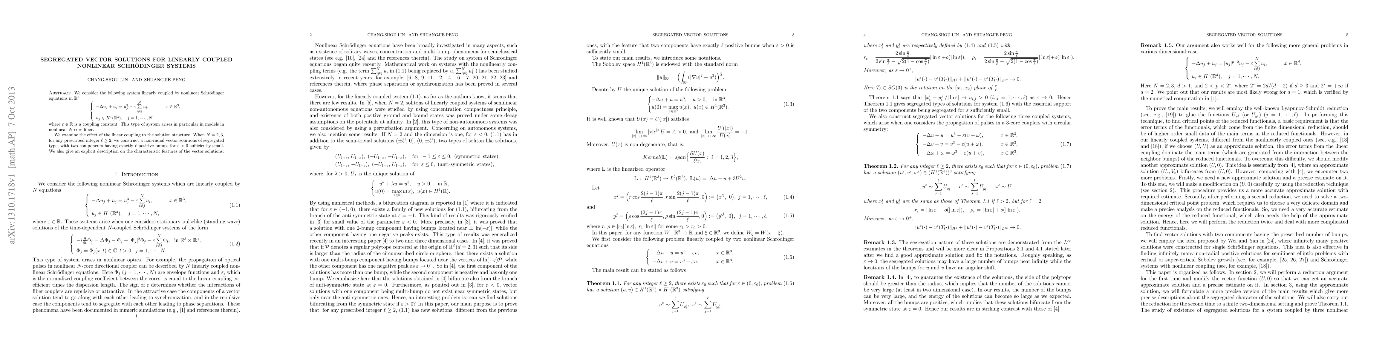 The work introduces a novel approach to constructing segregated vector solutions for linearly coupled nonlinear Schrödinger systems, offering explicit descriptions of their features and extending previous results to three-equation systems.