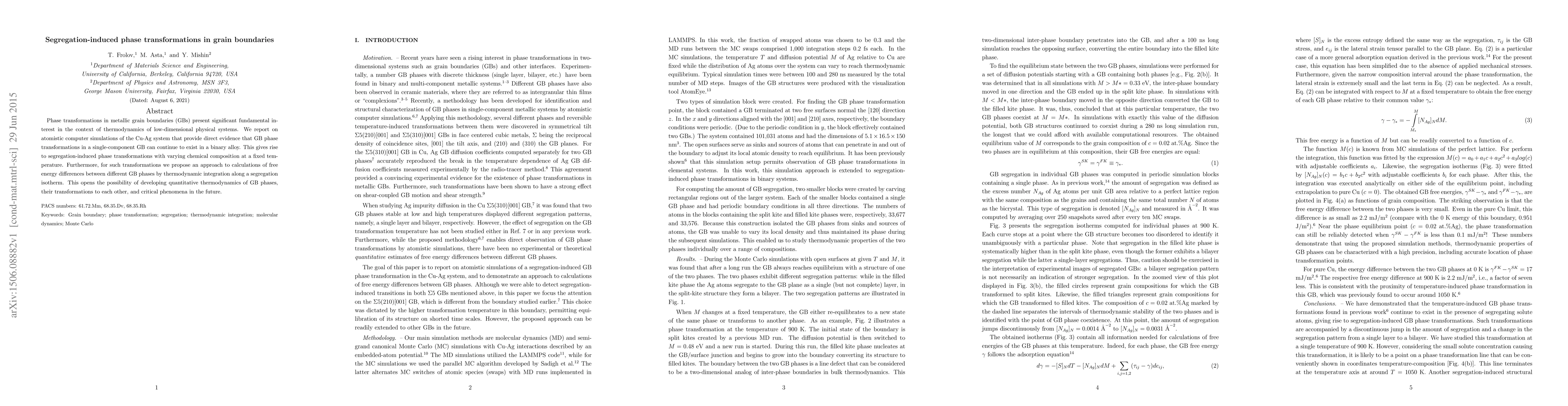 The study utilizes atomistic computer simulations of the Cu-Ag system to investigate phase transformations in metallic grain boundaries (GBs), demonstrating segregation-induced phase transformations with varying chemical composition at a fixed temperature.