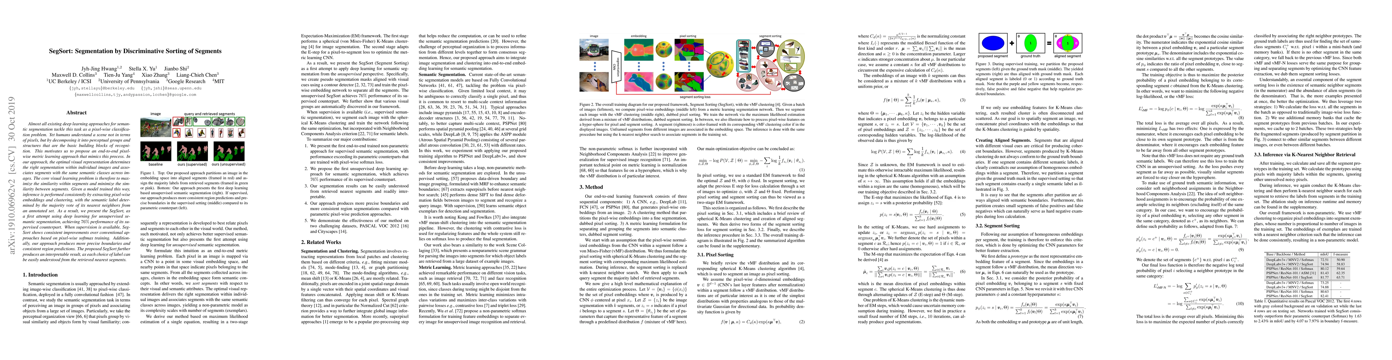 Almost all existing deep learning approaches for semantic segmentation tackle this task as a pixel-wise classification problem. Yet humans understand a scene not in terms of pixels, but by decomposing it into perceptual groups and structures that are the basic building blocks of recognition. This motivates us to propose an end-to-end pixel-wise metric learning approach that mimics this process. In our approach, the optimal visual representation determines the right segmentation within individual images and associates segments with the same semantic classes across images. The core visual learning problem is therefore to maximize the similarity within segments and minimize the similarity between segments. Given a model trained this way, inference is performed consistently by extracting pixel-wise embeddings and clustering, with the semantic label determined by the majority vote of its nearest neighbors from an annotated set. As a result, we present the SegSort, as a first attempt using deep learning for unsupervised semantic segmentation, achieving $76\%$ performance of its supervised counterpart. When supervision is available, SegSort shows consistent improvements over conventional approaches based on pixel-wise softmax training. Additionally, our approach produces more precise boundaries and consistent region predictions. The proposed SegSort further produces an interpretable result, as each choice of label can be easily understood from the retrieved nearest segments.