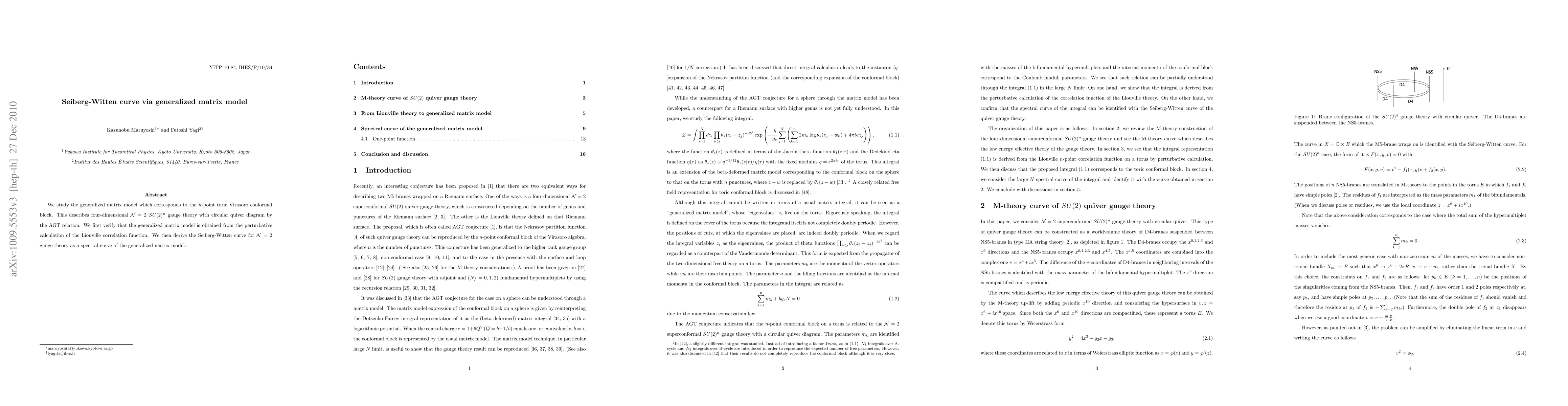 This paper explores the generalized matrix model related to n-point toric Virasoro conformal blocks, deriving the Seiberg-Witten curve for four-dimensional N=2 SU(2)^n gauge theory through perturbative calculations and the AGT relation. The study confirms the matrix model's correspondence to the Liouville correlation function.