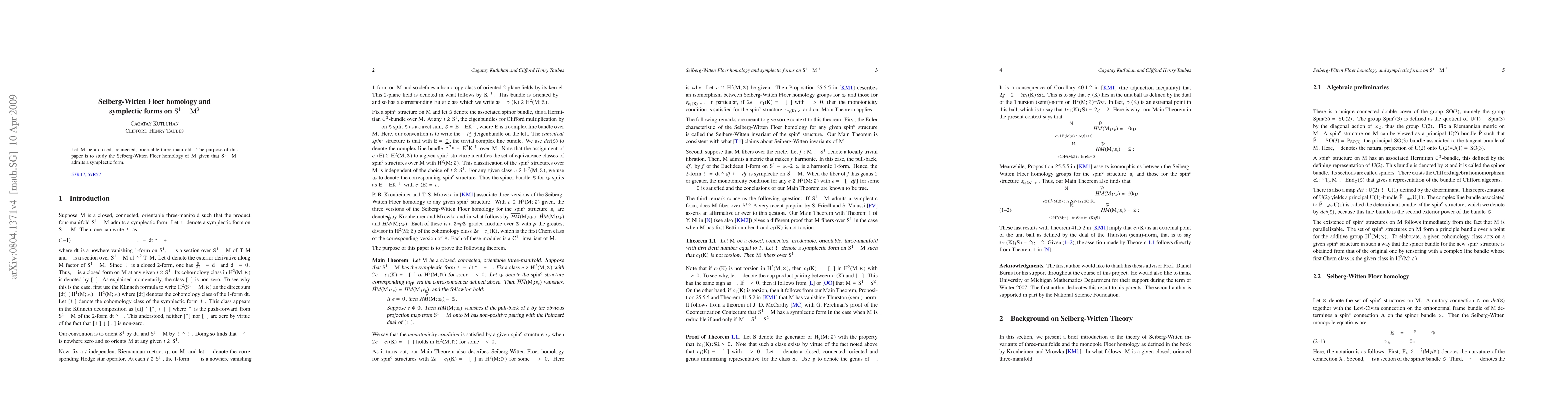 This paper investigates the Seiberg-Witten Floer homology of a closed, connected, orientable 3-manifold M when S^1 × M admits a symplectic form. It proves that M fibers over the circle if M's first Betti number is 1 and S^1 × M has a symplectic form with a non-torsion canonical class.