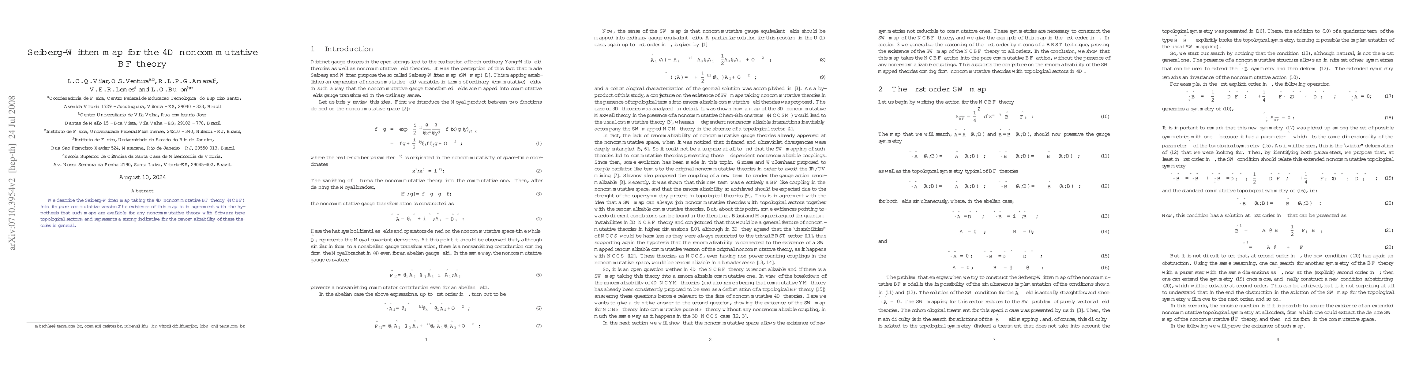 Summary: This paper establishes the Seiberg-Witten map for the 4D noncommutative BF theory, demonstrating the existence of a correspondence between the abelian and commutative versions, consistent with the hypothesis for noncommutative theories with Schwarz type topological sectors.