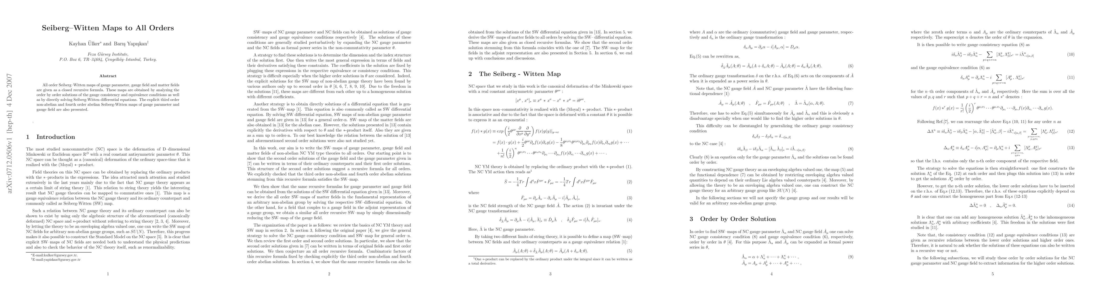 This paper provides a closed recursive formula for all-order Seiberg-Witten maps involving gauge parameters, gauge fields, and matter fields. It derives these maps through a combination of analyzing gauge consistency and equivalence conditions and solving Seiberg-Witten differential equations, with explicit third-order non-abelian and fourth-order abelian examples provided.