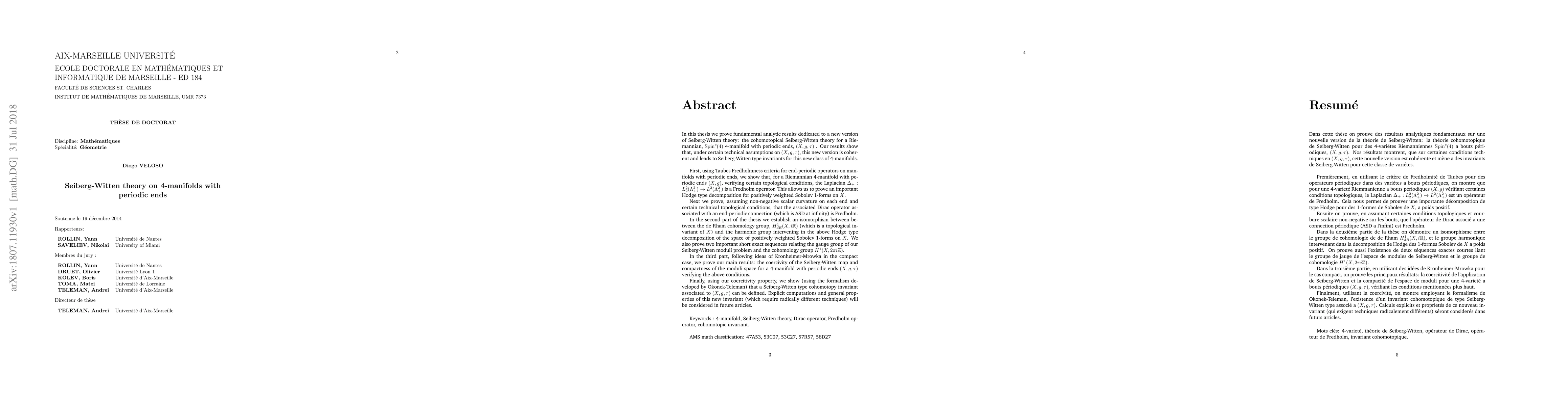 In this thesis we prove analytic results about a cohomotopical Seiberg-Witten theory for a Riemannian, Spin$^c$(4), 4-manifold with periodic ends, $(X, g, {\tau})$ . Our results show that, under certain technical assumptions on $(X, g, {\tau})$, this new version is coherent and leads to Seiberg-Witten type invariants for this new class of 4-manifolds. In the first part, using Taubes criteria for end-periodic operators, we show that for a Riemannian 4-manifold with periodic ends, $(X, g)$, verifying certain topological conditions, the Laplacian, $\Delta_+ : L^2_2({\Lambda^2}_+) \rightarrow L^2({\Lambda^2}_+)$, is a Fredholm operator. This allows us to prove a Hodge type decomposition for positively weighted Sobolev 1-forms on $(X,g)$. We also prove, assuming non-negative scalar curvature on each end and certain technical topological conditions, that the associated Dirac operator associated with an end-periodic connection (which is ASD at infinity) is Fredholm. In the second part we establish an isomorphism between the de Rham cohomology group, $H^{1}_{\mathrm{dR}}(X,i\mathbb{R})$ (which is a topological invariant of X) and the harmonic group intervening in the above Hodge type decomposition of the space of positively weighted 1-forms on $(X,g)$. We also prove two short exact sequences relating the gauge group of the Seiberg-Witten moduli problem and the cohomology group $H^{1}(X, 2{\pi}i\mathbb{Z})$. In the third part, we prove the main results: the coercivity of the Seiberg-Witten map and the compactness of the moduli space for a 4-manifold with periodic ends, $(X,g,{\tau})$, verifying the above conditions. Finally, using the coercitivity property, we show that a Seiberg-Witten type cohomotopy invariant associated to $(X, g, {\tau})$ can be defined