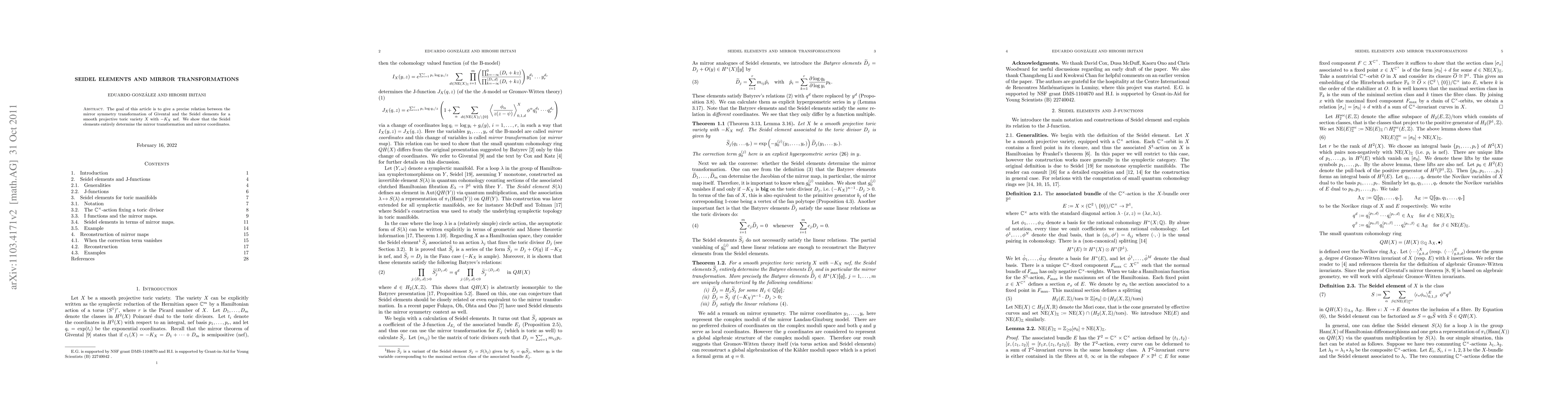 This paper establishes a precise link between Givental's mirror symmetry transformation and Seidel elements for smooth projective toric varieties with nef anticanonical classes, demonstrating that Seidel elements fully determine the mirror transformation and coordinates.