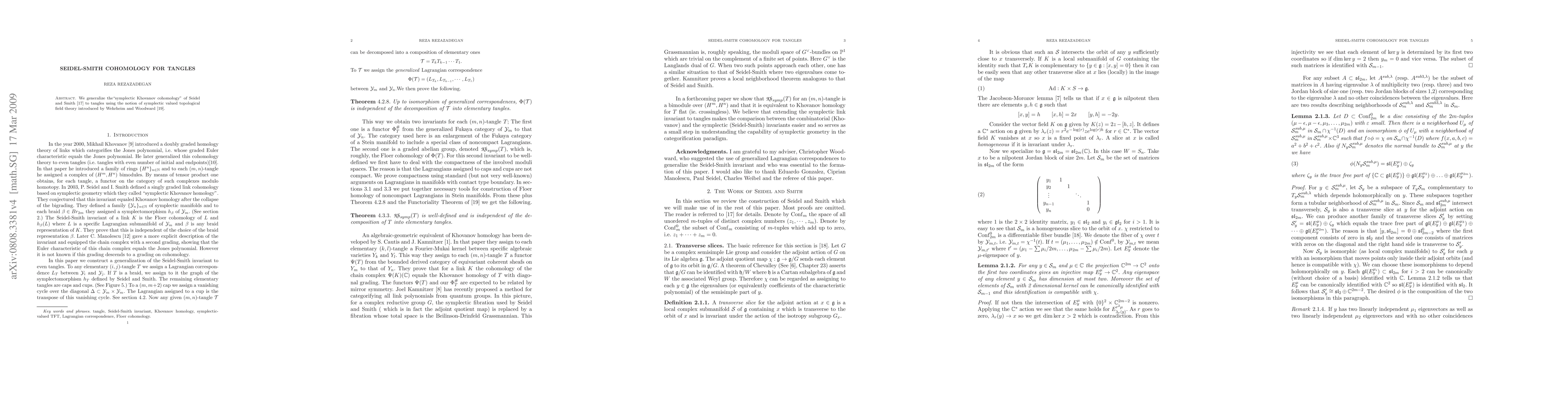 We generalize the "symplectic Khovanov cohomology" of Seidel and Smith to tangles using the notion of symplectic valued topological field theory introduced by Wehrheim and Woodward.