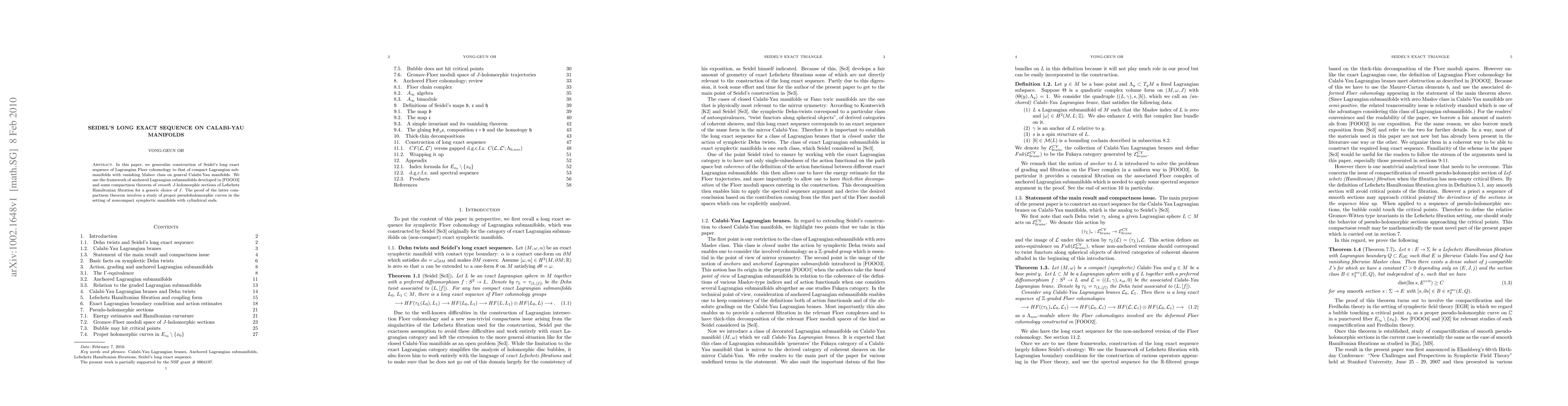This paper extends Seidel's long exact sequence of Lagrangian Floer cohomology to compact Lagrangian submanifolds on Calabi-Yau manifolds, employing anchored Lagrangian frameworks and proving a compactness theorem for smooth $J$-holomorphic sections using proper pseudoholomorphic curves.