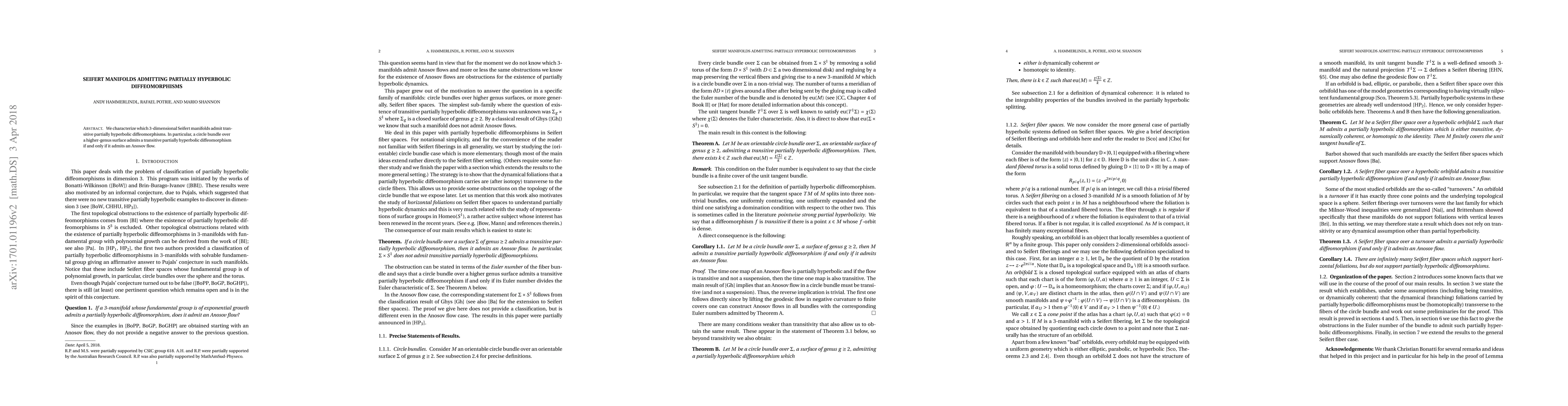 Summary: The paper identifies conditions under which 3-dimensional Seifert manifolds support transitive partially hyperbolic diffeomorphisms, concluding that such manifolds admit these diffeomorphisms if and only if they also support Anosov flows.