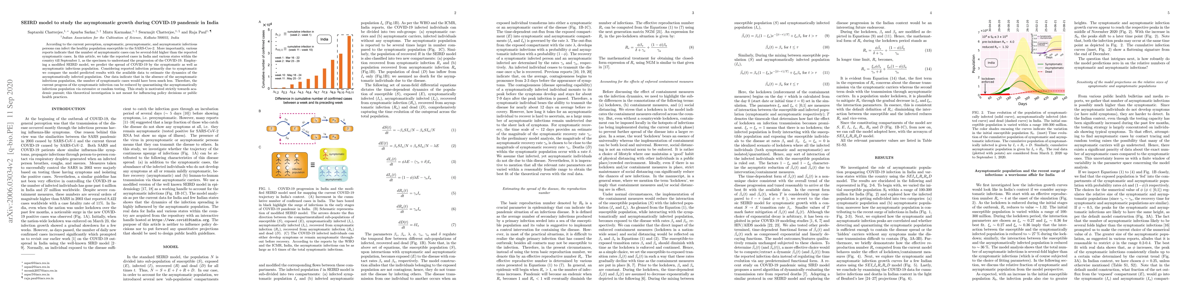 According to the current perception, symptomatic, presymptomatic, and asymptomatic infectious persons can infect the healthy population susceptible to the SARS-Cov-2. More importantly, various reports indicate that the number of asymptomatic cases can be several-fold higher than the reported symptomatic cases. In this article, we take the reported cases in India and various states within the country till September 1, as the specimen to understand the progression of the COVID-19. Employing a modified SEIRD model, we predict the spread of COVID-19 by the symptomatic as well as asymptomatic infectious population. Considering reported infection primarily due to symptomatic we compare the model predicted results with the available data to estimate the dynamics of the asymptomatically infected population. Our data indicate that in the absence of the asymptomatic infectious population, the number of symptomatic cases would have been much less. Therefore, the current progress of the symptomatic infection can be reduced by quarantining the asymptomatically infectious population via extensive or random testing. This study is motivated strictly towards academic pursuit; this theoretical investigation is not meant for influencing policy decisions or public health practices.