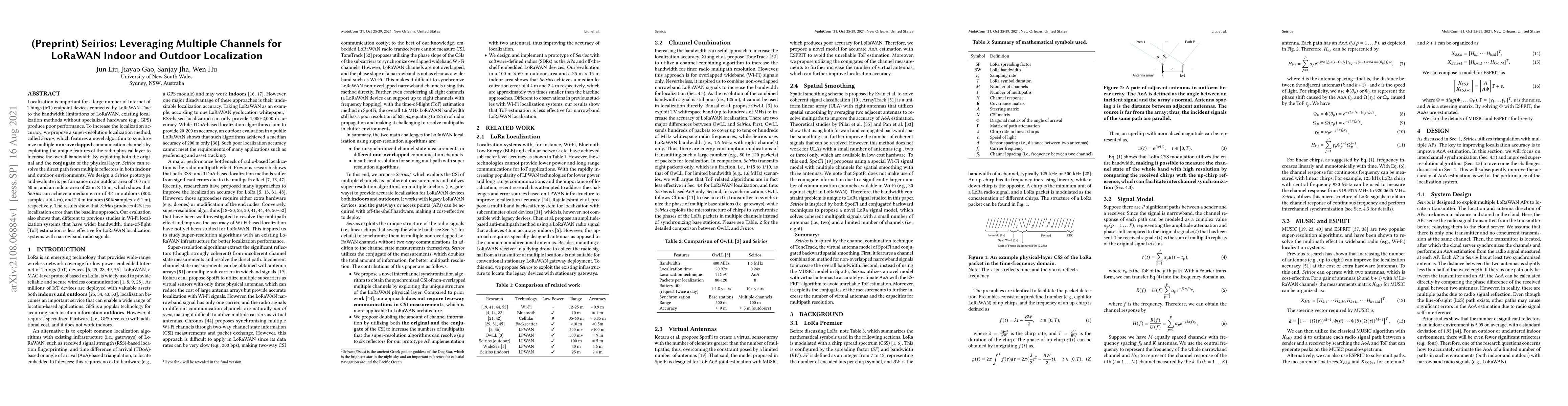Seirios proposes a super-resolution localization method for LoRaWAN IoT devices, leveraging multiple non-overlapped communication channels to enhance localization accuracy. The method achieves a median error of 4.4 m outdoors and 2.4 m indoors, outperforming the baseline by 42%.