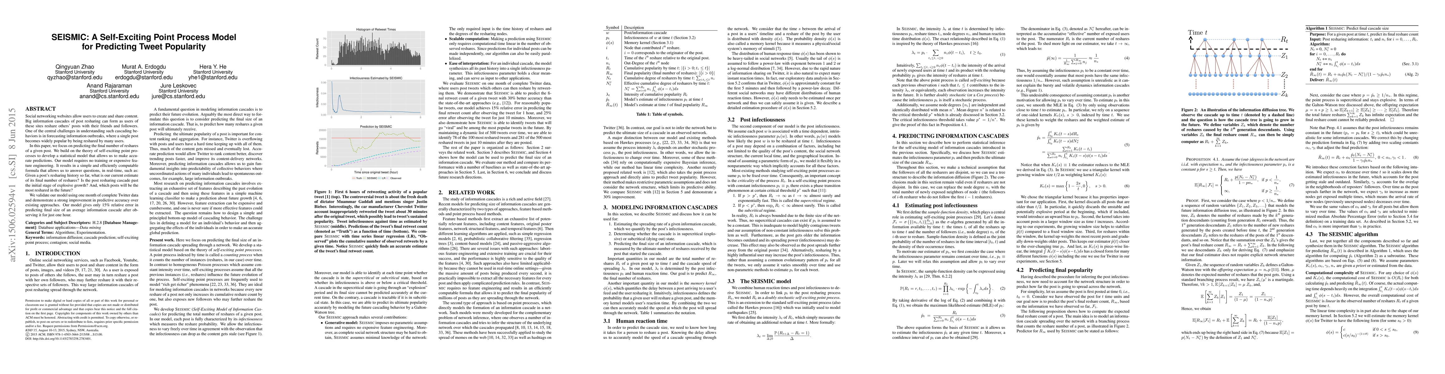 This paper introduces SEISMIC, a self-exciting point process model for predicting tweet popularity based on resharing history, achieving high accuracy with minimal computational cost and no training. The model demonstrates significant improvement over existing methods, with a 15% relative error after just one hour of observation.