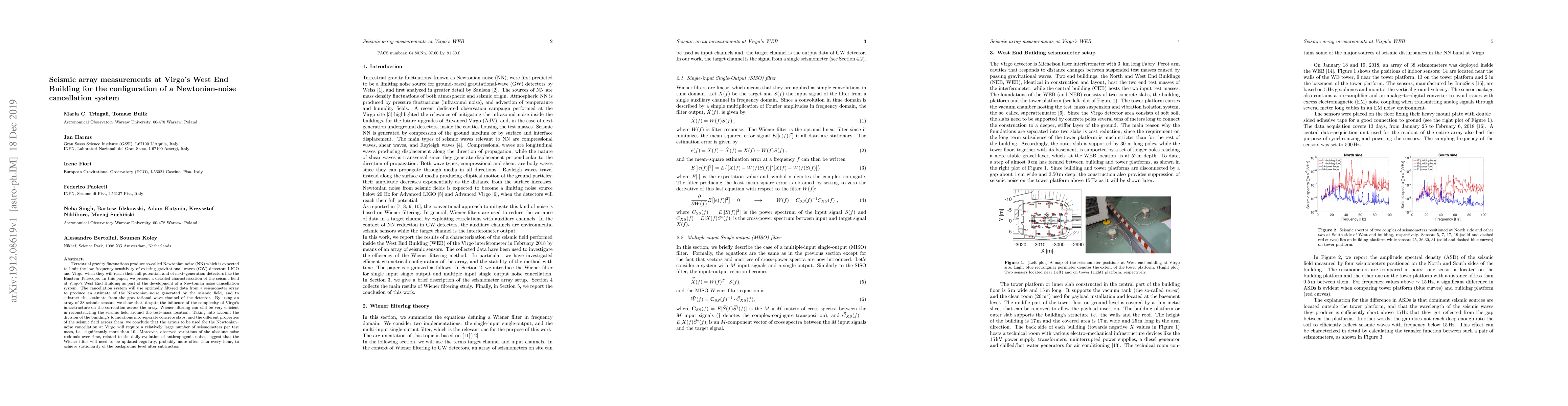 This paper characterizes the seismic field at Virgo's West End Building to develop a Newtonian-noise cancellation system for gravitational-wave detectors. Using an array of 38 seismic sensors, the study shows that Wiener filtering can effectively reconstruct the seismic field despite infrastructure complexity, indicating that a large number of seismometers will be needed for effective noise cancellation.