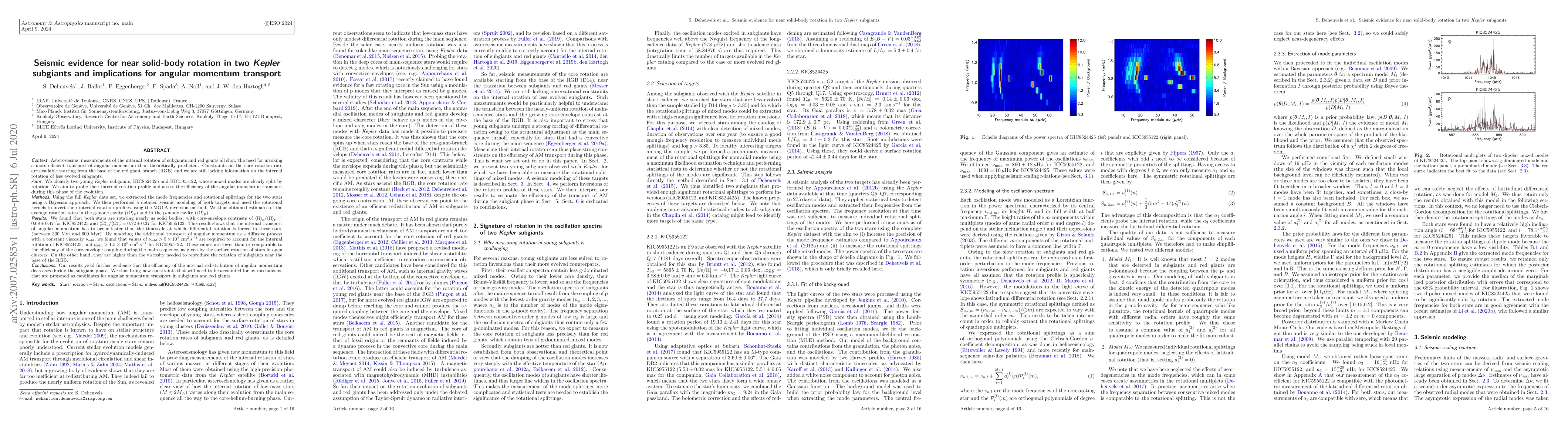 This paper uses asteroseismic data from two Kepler subgiants to reveal that they rotate nearly as solid bodies, indicating a more efficient angular momentum transport than previously predicted. The study suggests that the internal redistribution of angular momentum becomes less efficient during the subgiant phase compared to the main sequence.