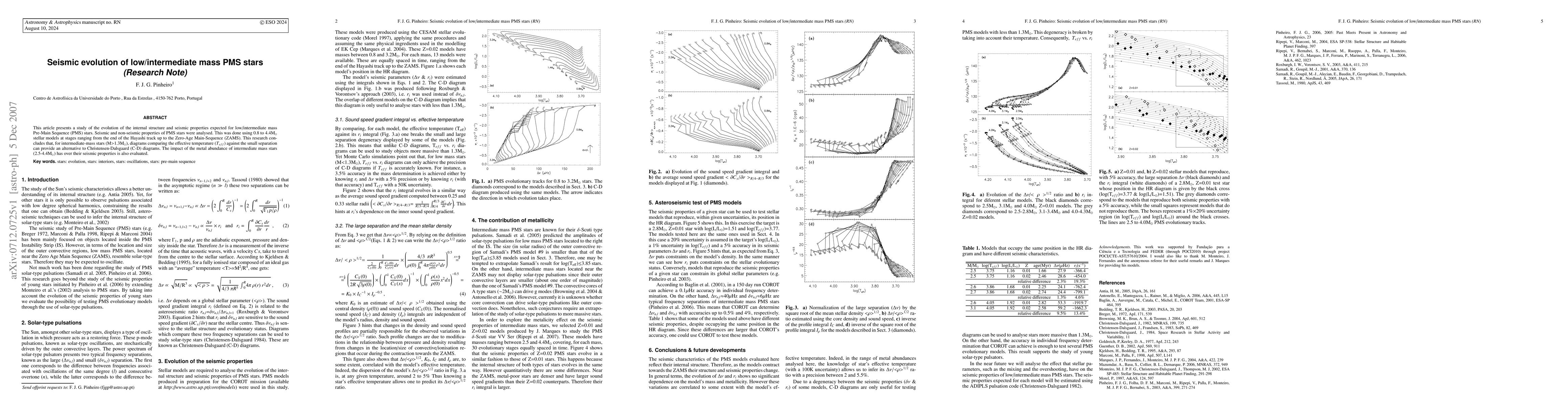 This study investigates the seismic evolution of low/intermediate mass Pre-Main Sequence stars, finding that effective temperature versus small separation diagrams can serve as an alternative to traditional seismic analysis methods. It also evaluates the impact of metal abundance on seismic properties for intermediate-mass stars.
