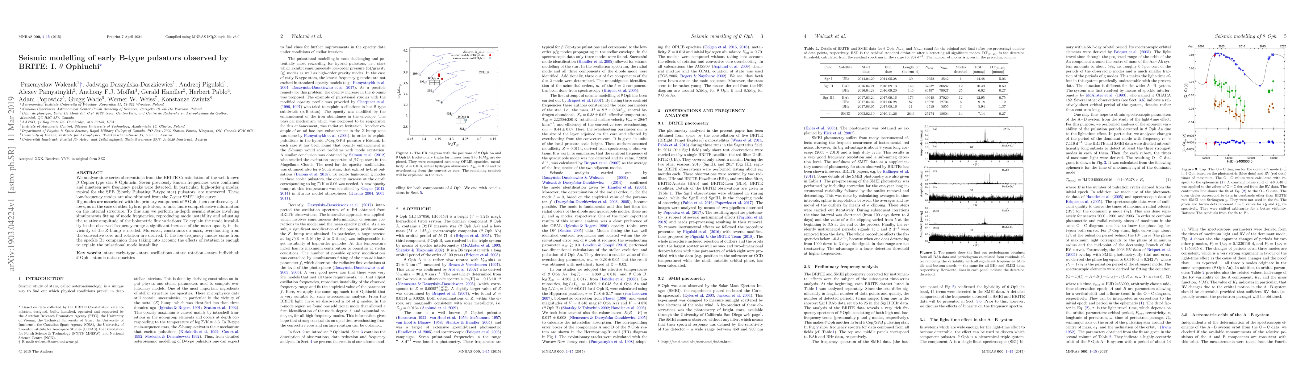 This study analyzes BRITE-Constellation observations of the star theta Ophiuchi, confirming seven known frequencies and discovering nineteen new ones, including low-frequency g modes. Seismic modeling suggests a significant opacity increase near the Z-bump for the primary component, or rotation effects for the B5 companion, aiding in understanding the star's internal structure.