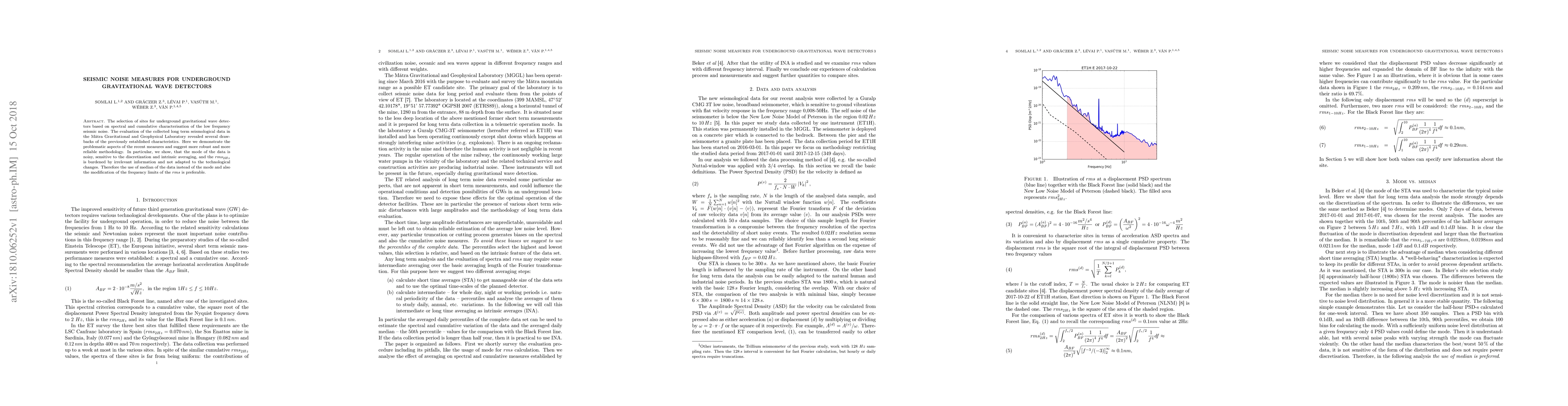 This paper critiques existing methods for characterizing seismic noise in underground gravitational wave detectors, highlighting issues with current measures like the mode and $rms_{2Hz}$. It proposes a more robust approach using the median and adjusted frequency limits for better noise characterization.