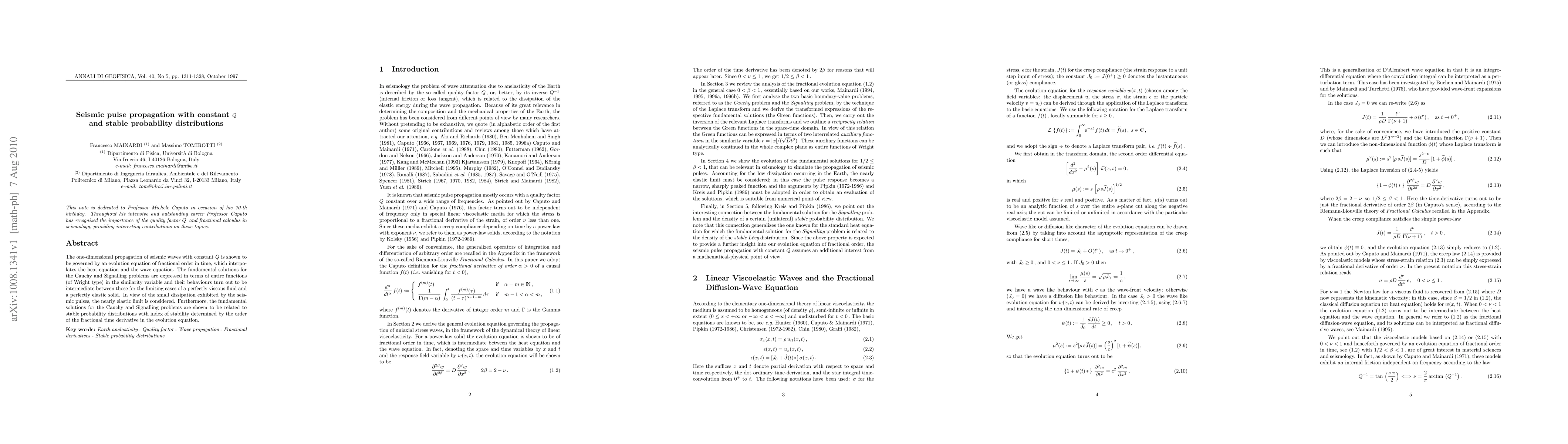 Seismic waves with constant Q exhibit behavior between a viscous fluid and an elastic solid, with fundamental solutions related to stable probability distributions.