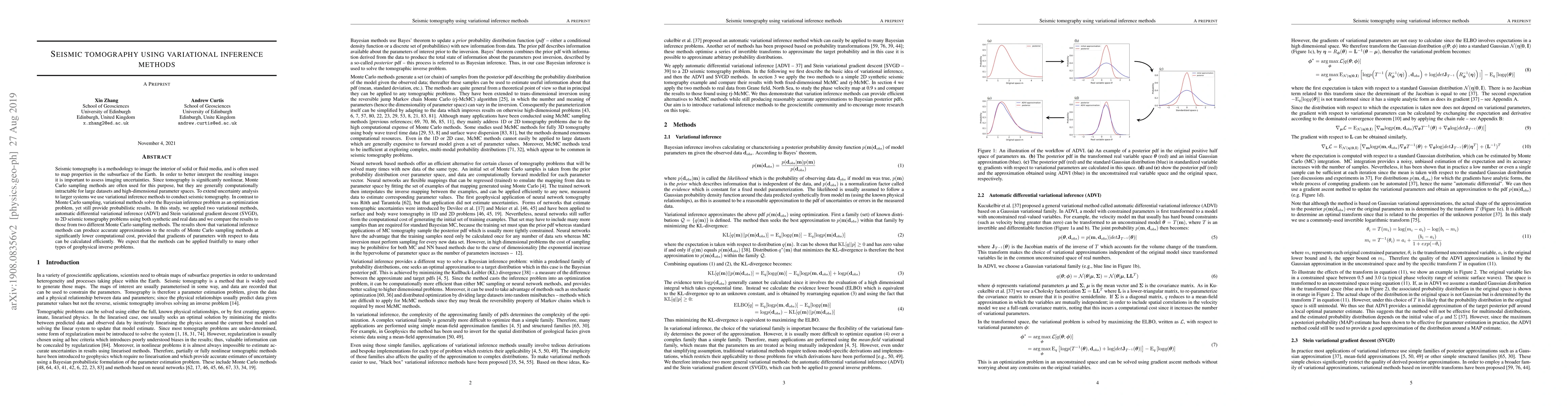 This paper explores the use of variational inference methods, specifically automatic differential variational inference (ADVI) and Stein variational gradient descent (SVGD), for seismic tomography to efficiently assess imaging uncertainties. Compared to Monte Carlo sampling, variational methods provide accurate probabilistic results at a significantly lower computational cost, making them suitable for large-scale geophysical inverse problems.